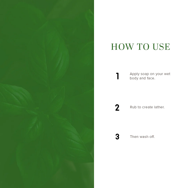 • Apply soap on wet body and face, rub to produce lather, then wash off