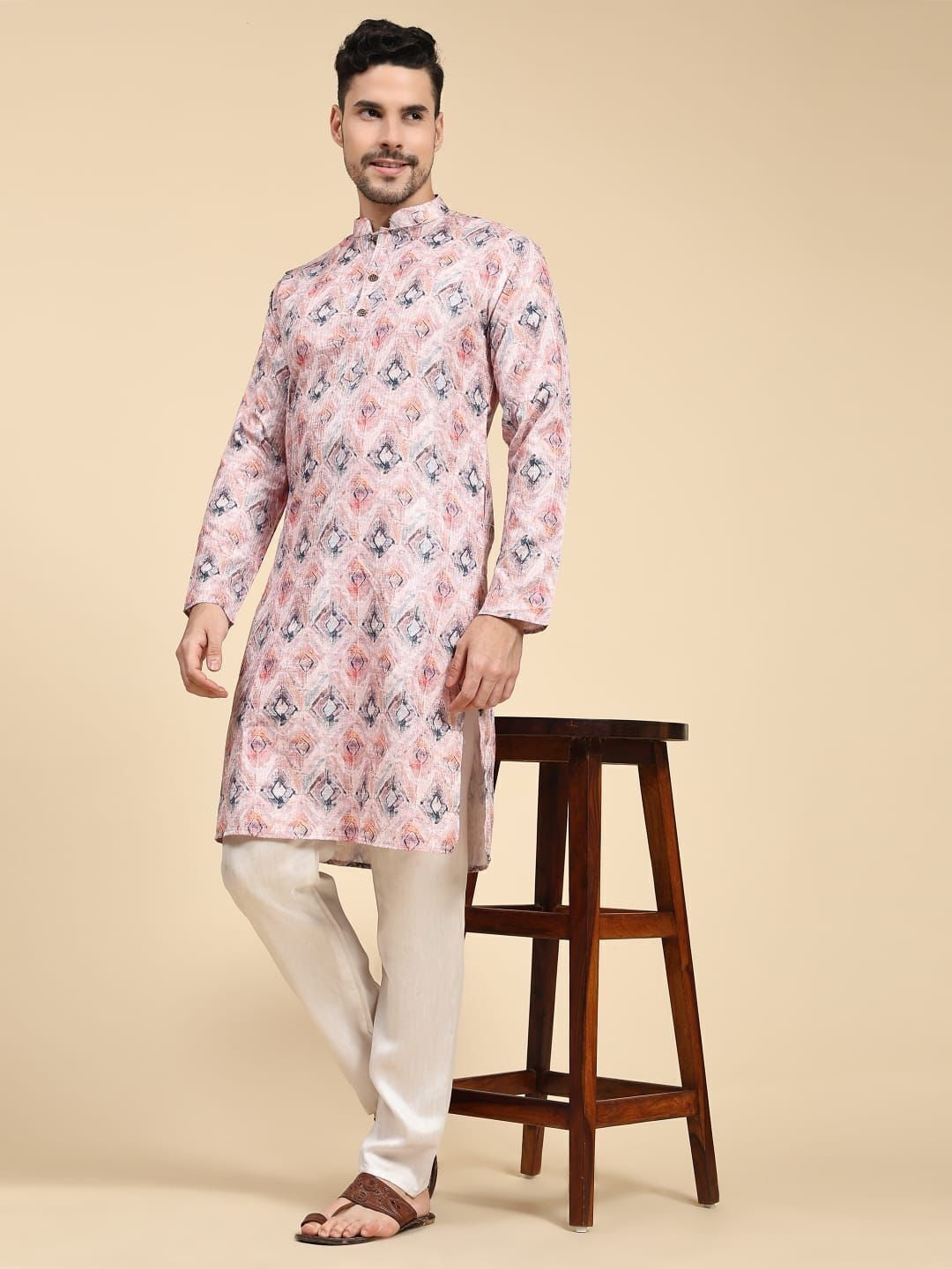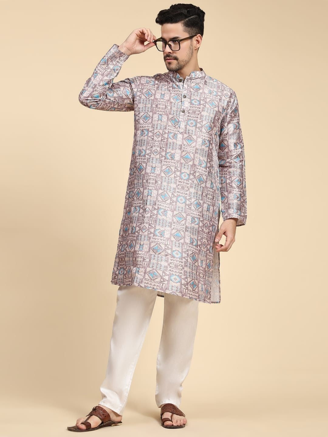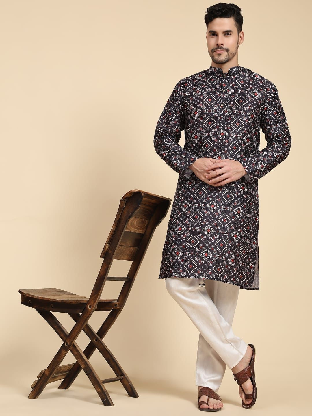 Men's Full Stitched Cotton With Beautiful Print Work Kurta Pajama Set