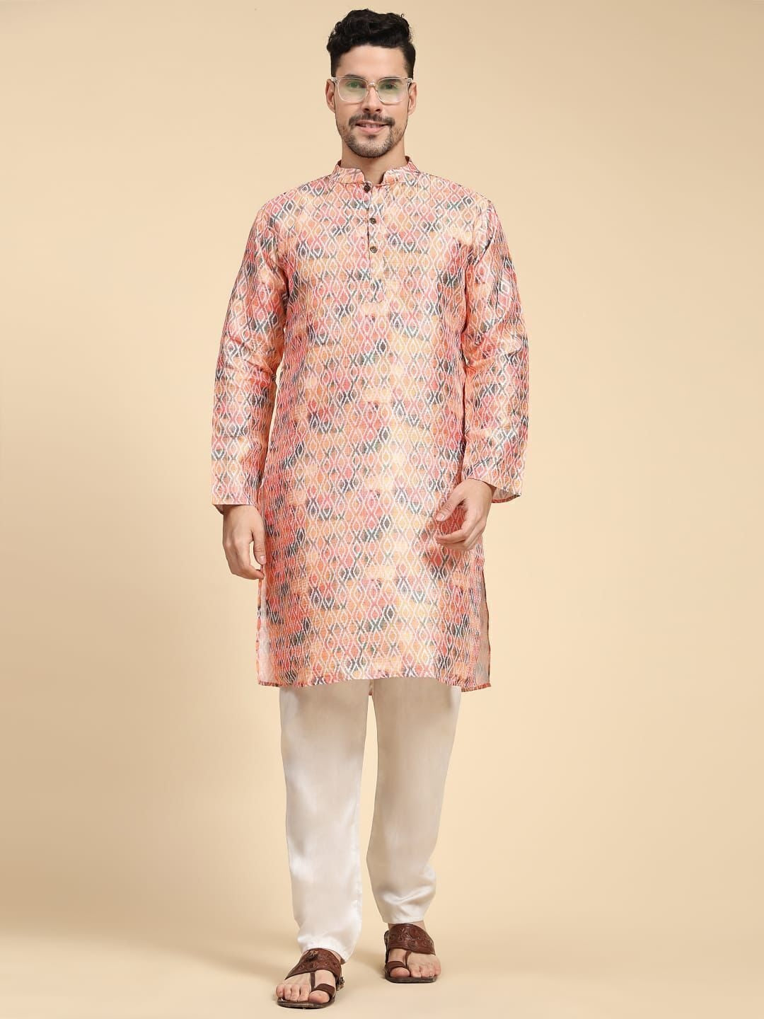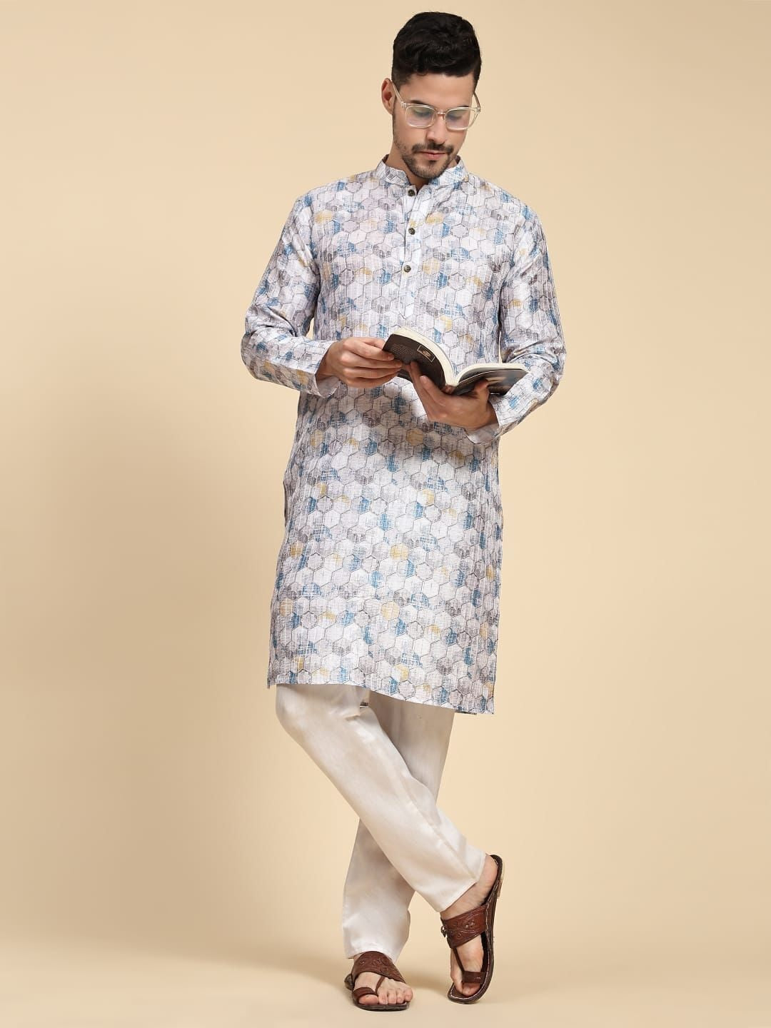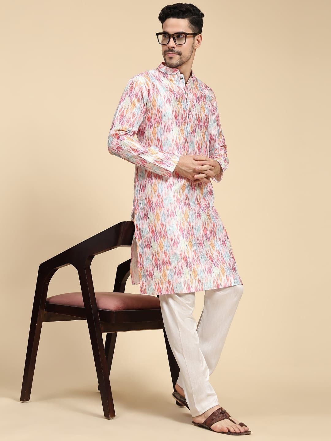 Men's Full Stitched Cotton With Beautiful Print Work Kurta Pajama Set