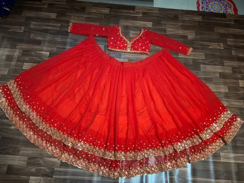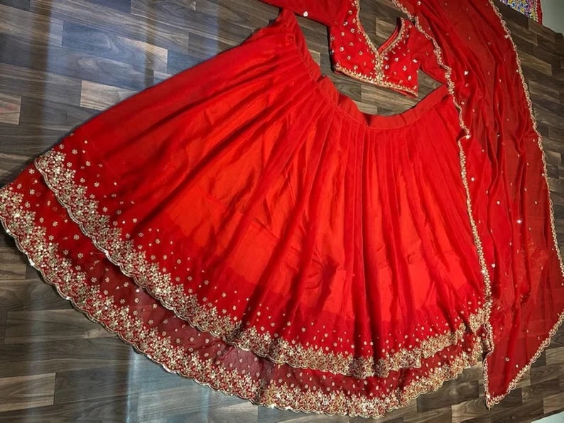 Premium Georgette & Embroidered Designer Lehenga Choli With Dupatta
