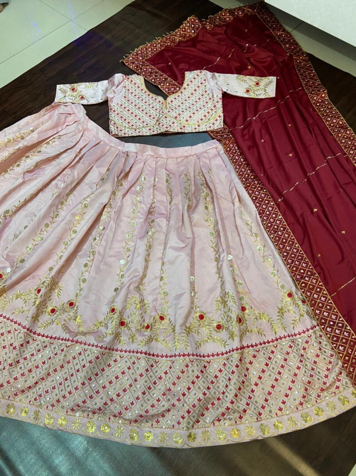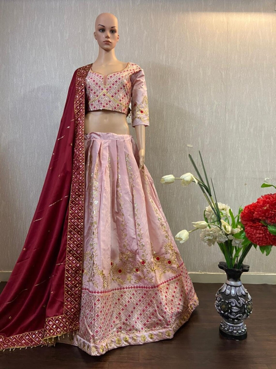 Premium Taffeta Silk Embroidery Sequence Work Lehenga Choli Dupatta