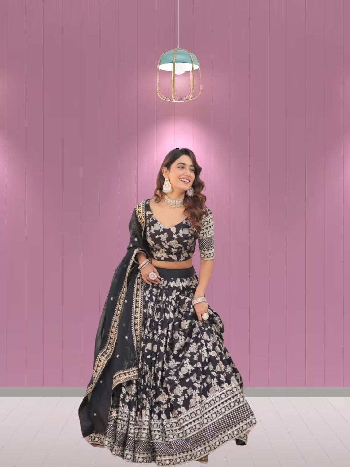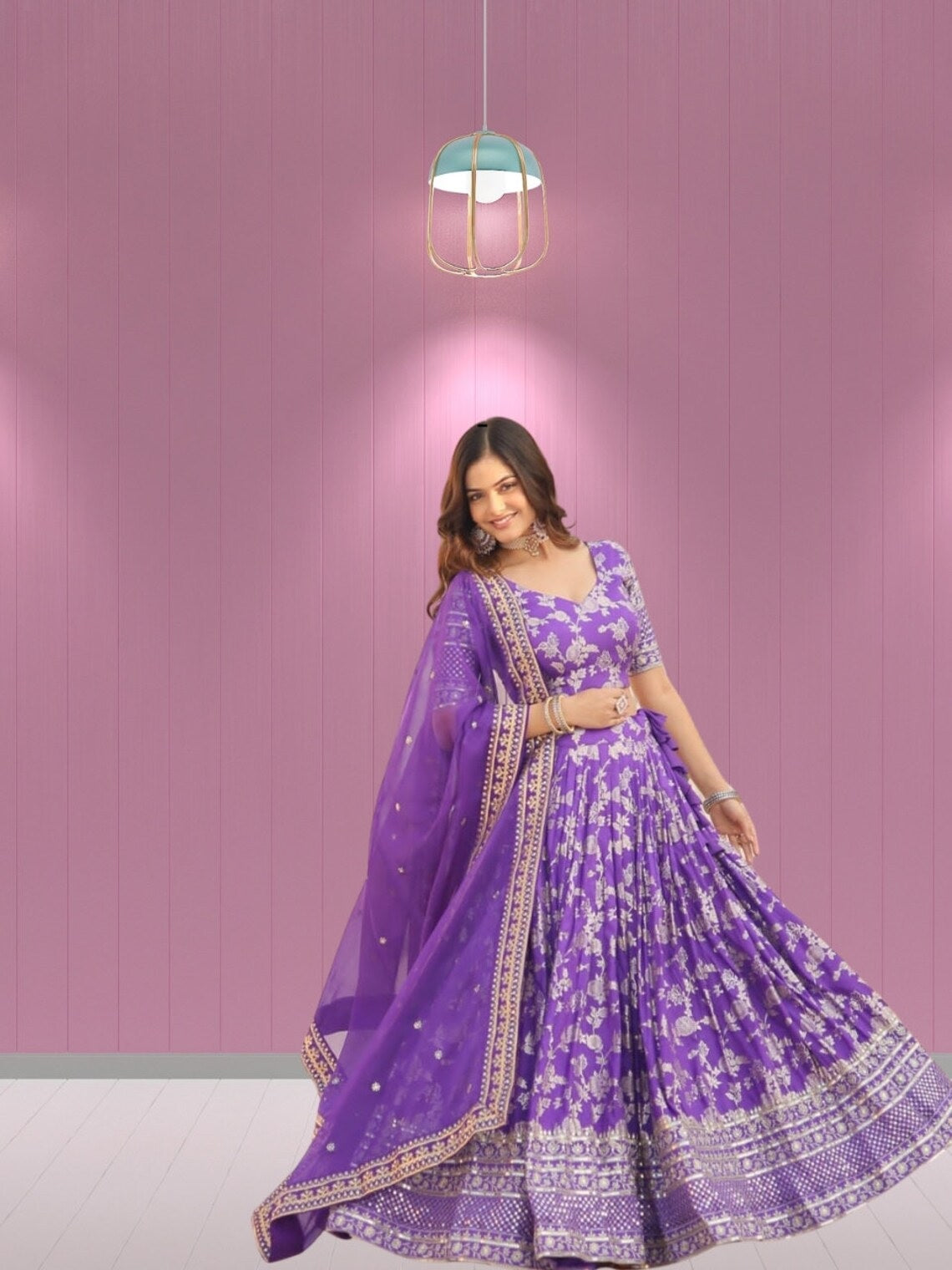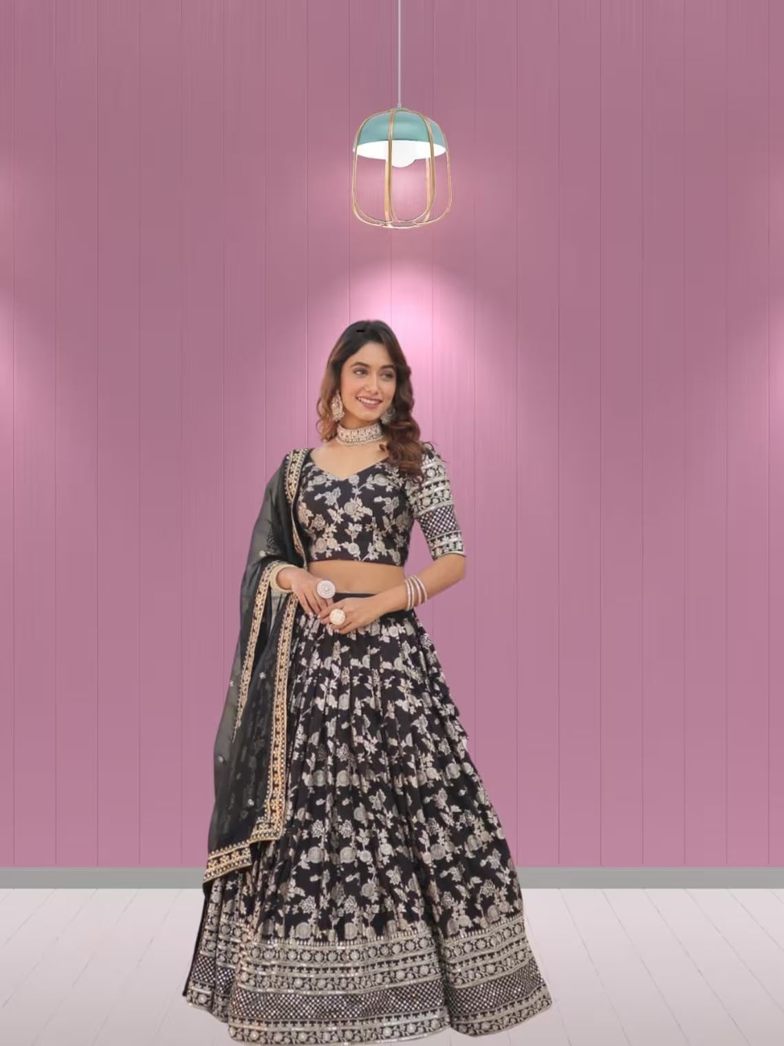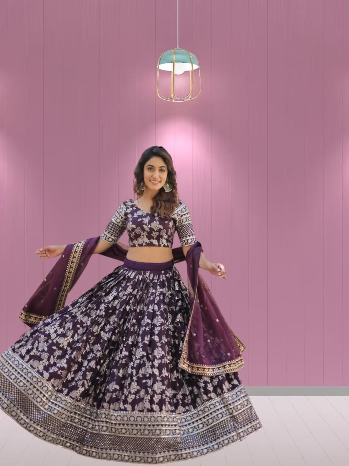 Pure Viscose Jacquard With Embroidery Sequins work Lehenga Choli Dupatta