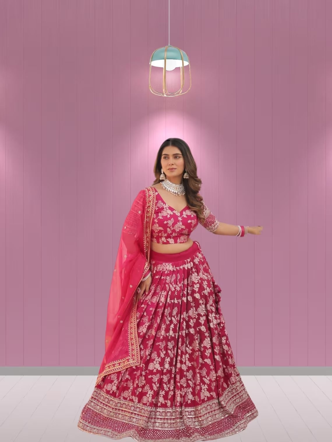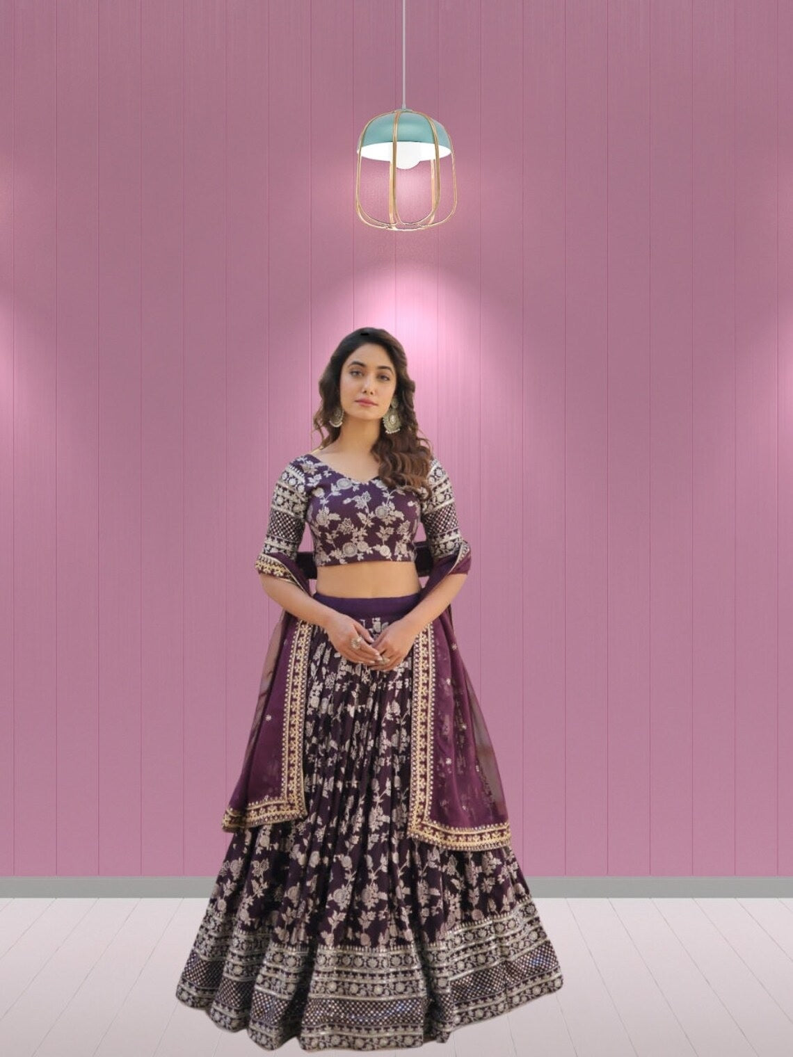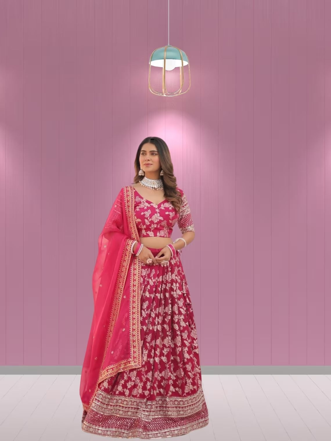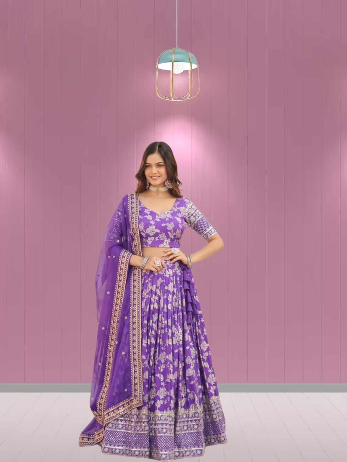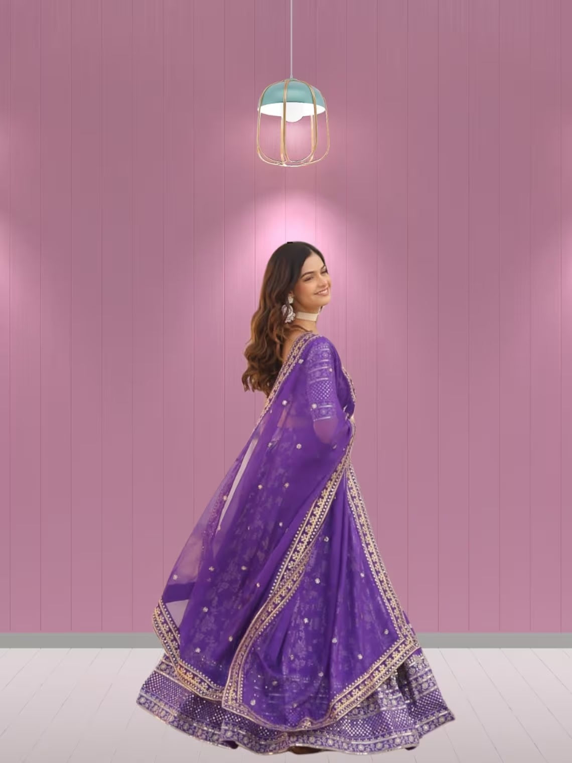 Pure Viscose Jacquard With Embroidery Sequins work Lehenga Choli Dupatta