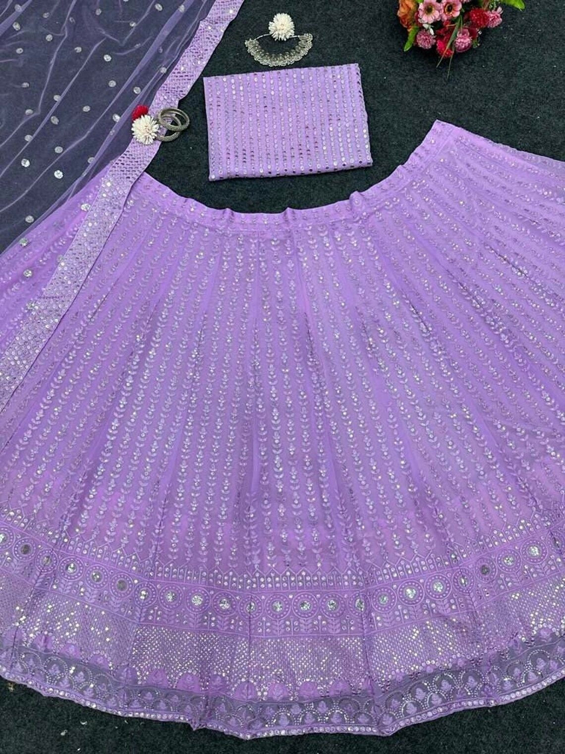 Lehenga Fabric :- Butterfly Net With Embroidery Foil Mirror Work
