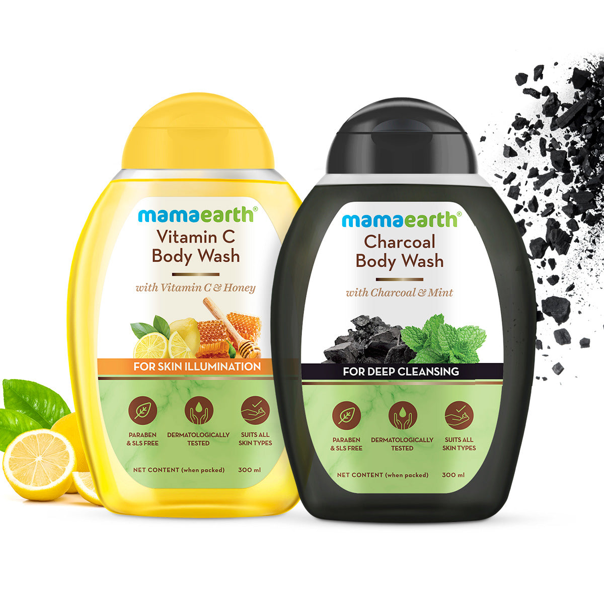 Mamaearth Body Wash Vitamin C Body Wash and Charcoal Body Wash Combo