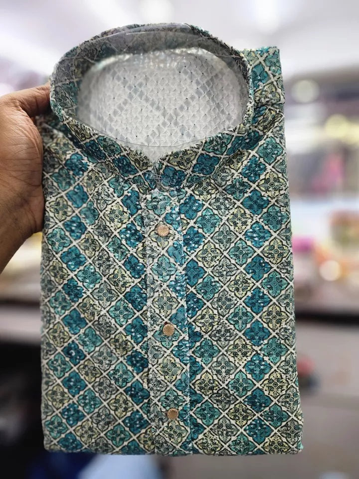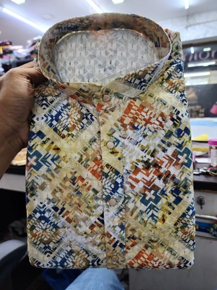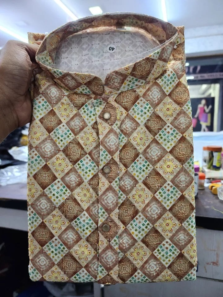 Full Stitched Wedding Ethnic Heavy Rayon Kurta Pajama Set For Men's