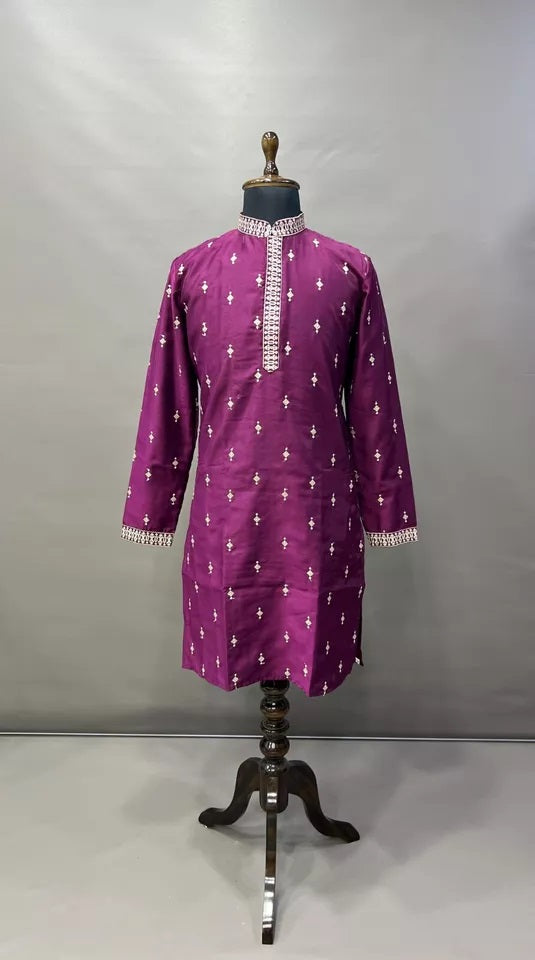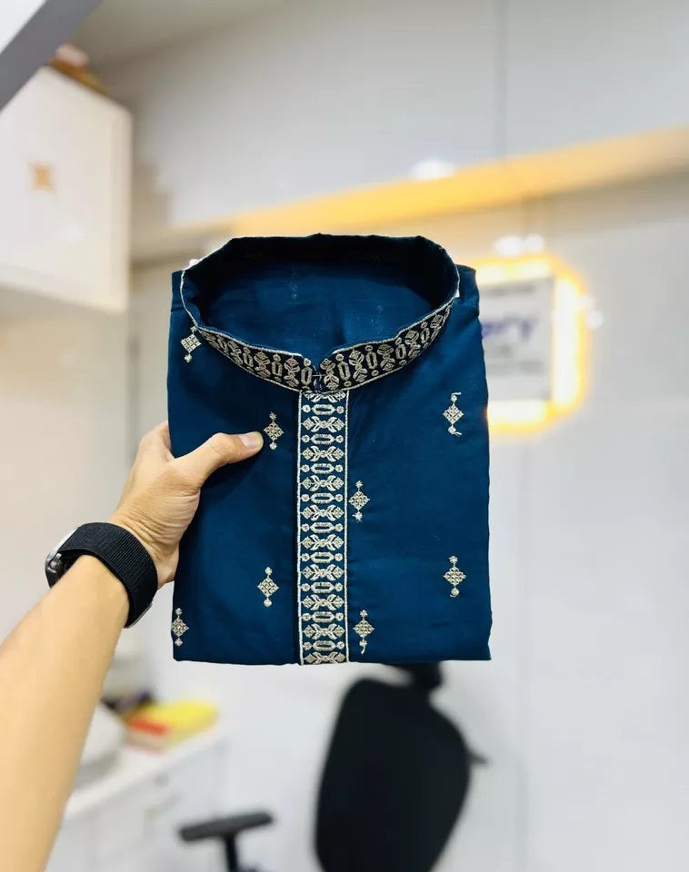 Party Wear Full Stitched Matka Silk Kurta & Pajama Set