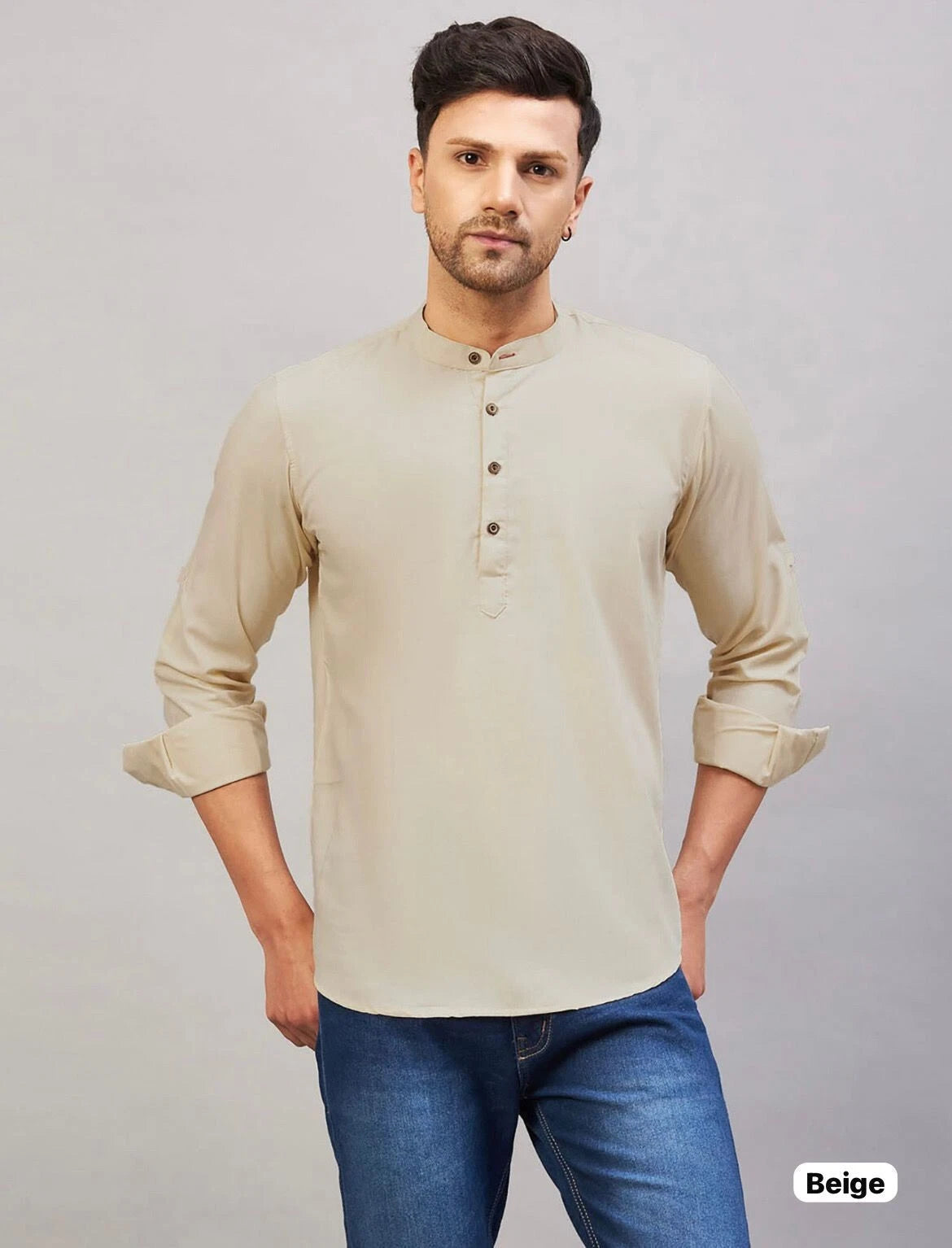 Full Stitched Function Style Ethnic Premium Cotton Short Kurta For Men's