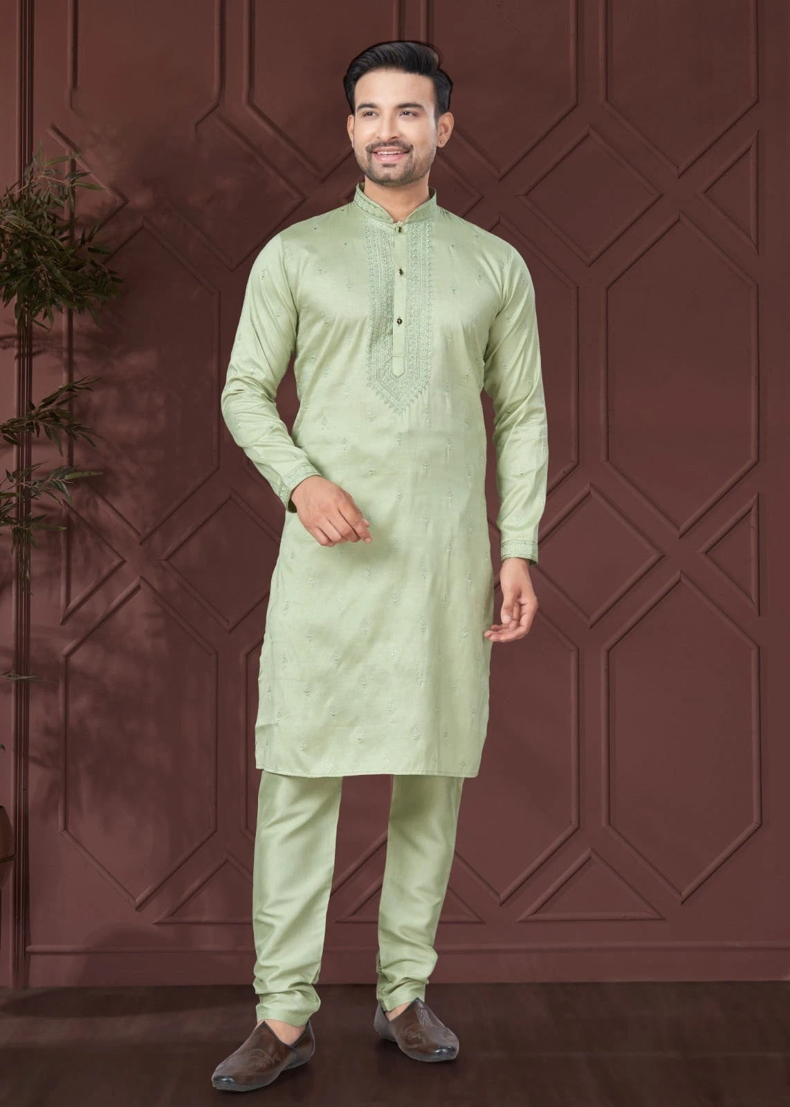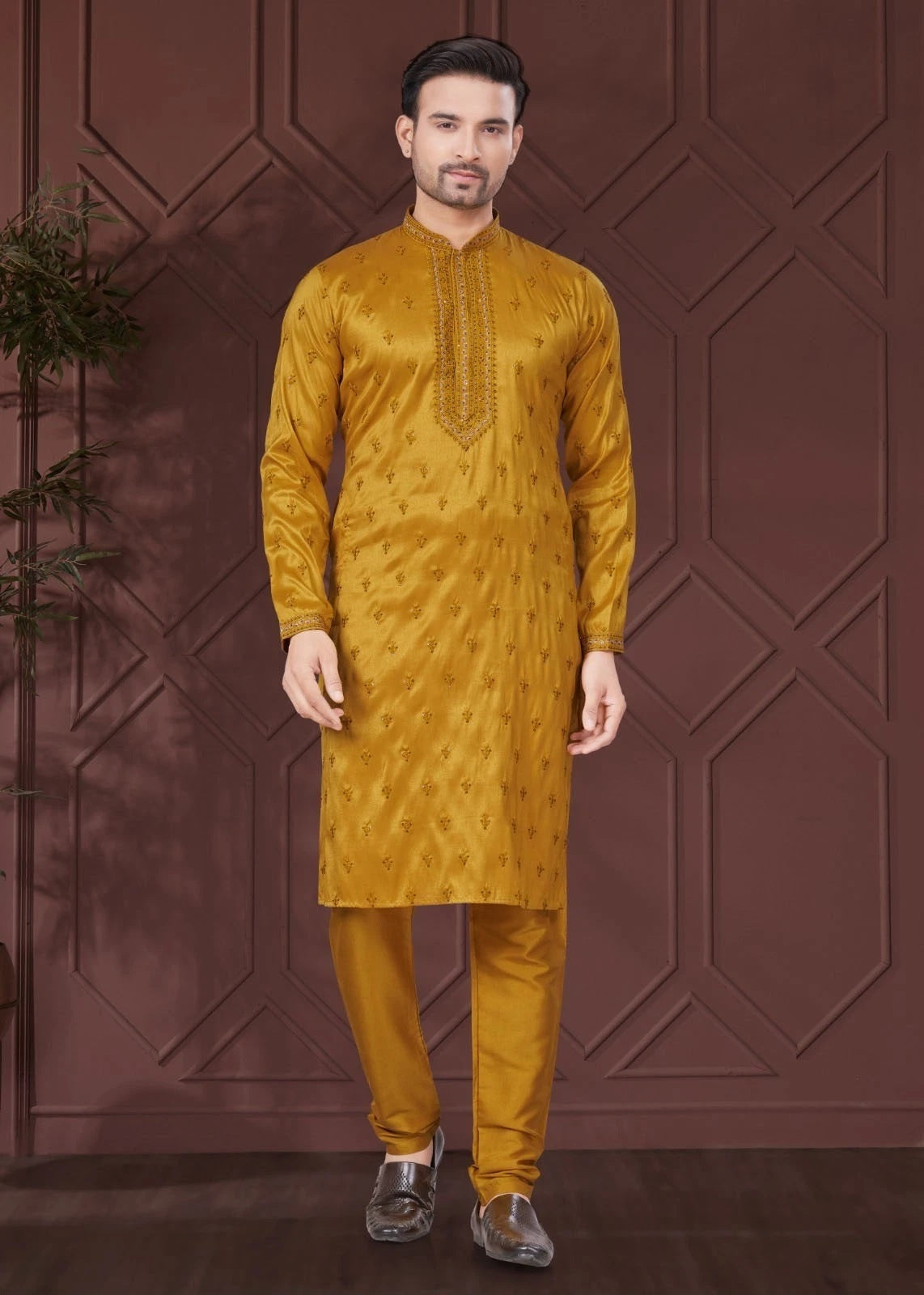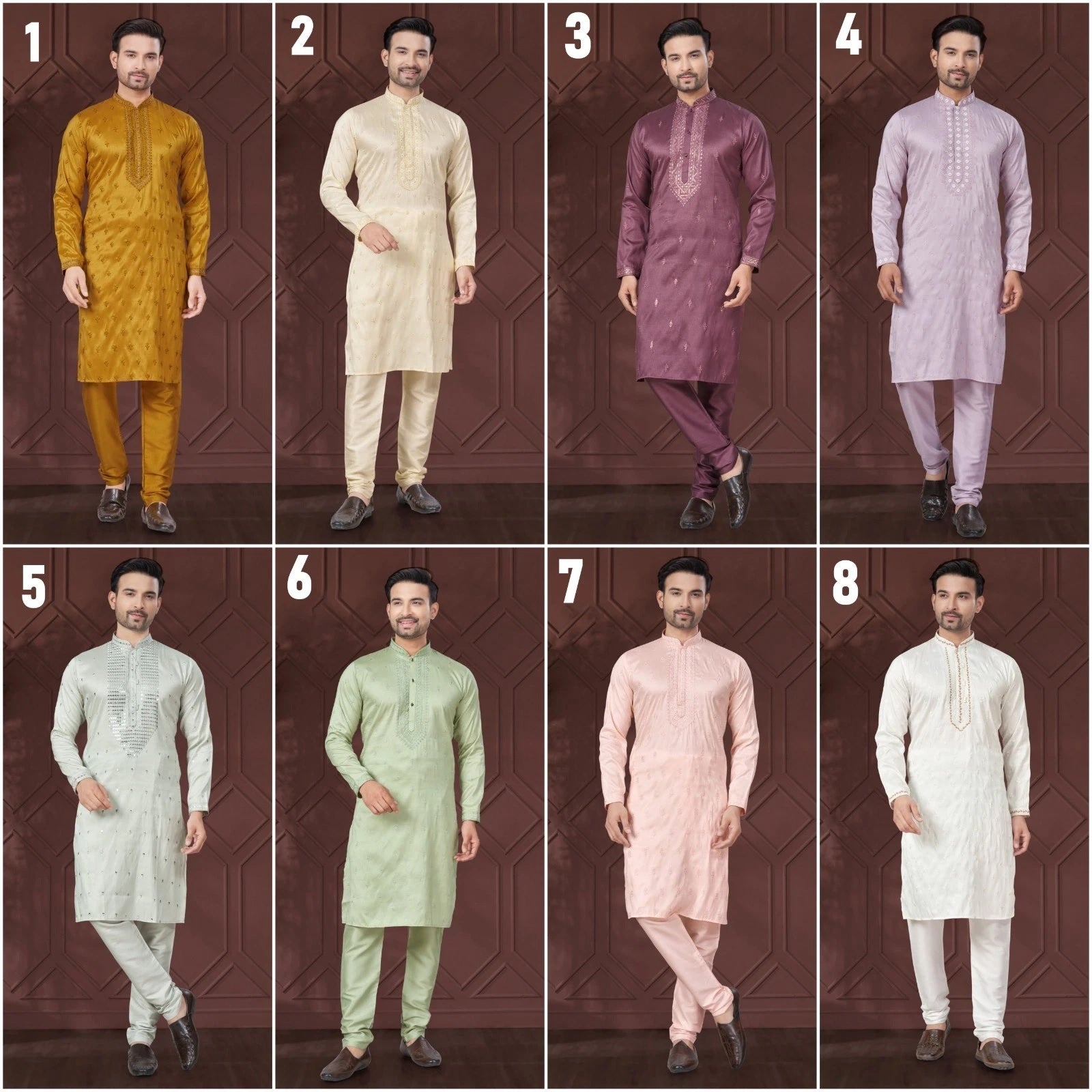 Pure Silk Designer Festival Wear Kurta Pajama Set For Men's 16-MT