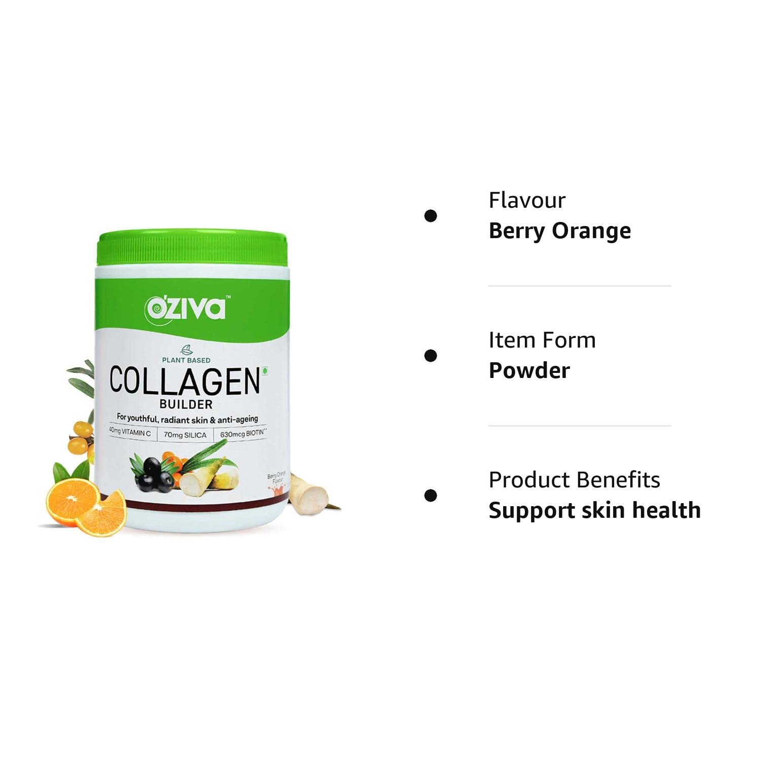 OZiva Plant Based Collagen Builder - 250 gm - Berry Orange