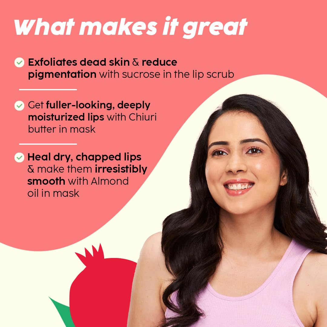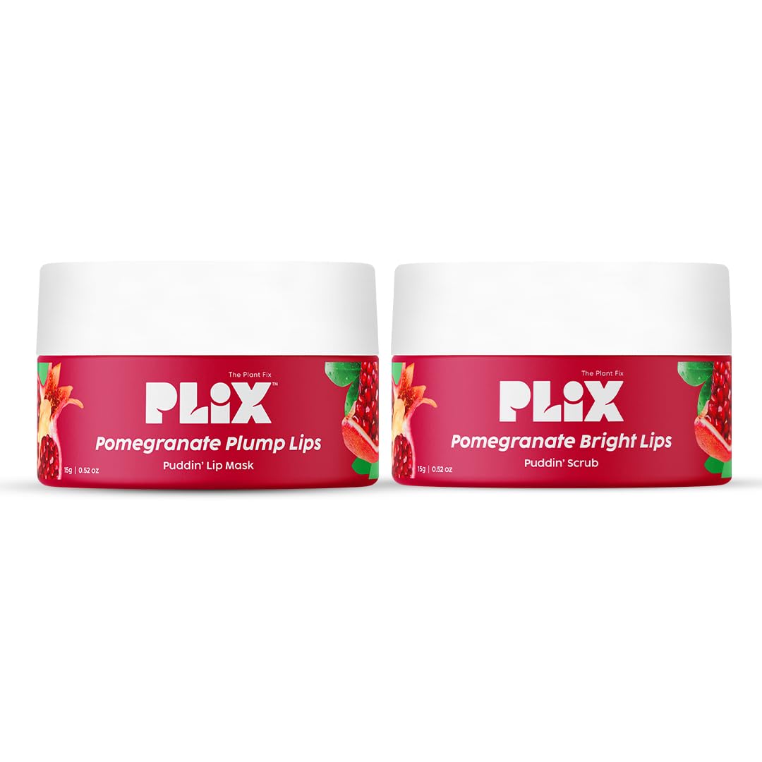PLIX Pomegranate Lip Care Combo, Exfoliating Scrub and Plumping Lip Mask (15 + 15) gms