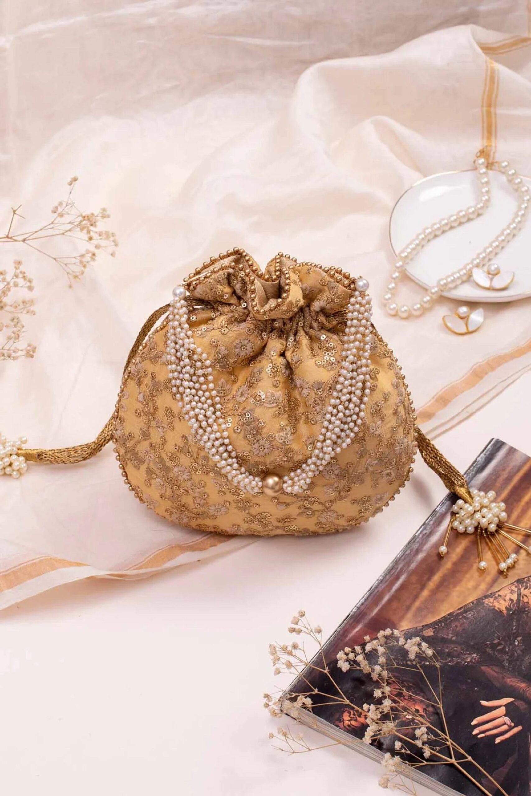Potli bag are designed for any evening party or casual occasions at any time of the day. Marriage ceremonies to all kind of wedding parties.