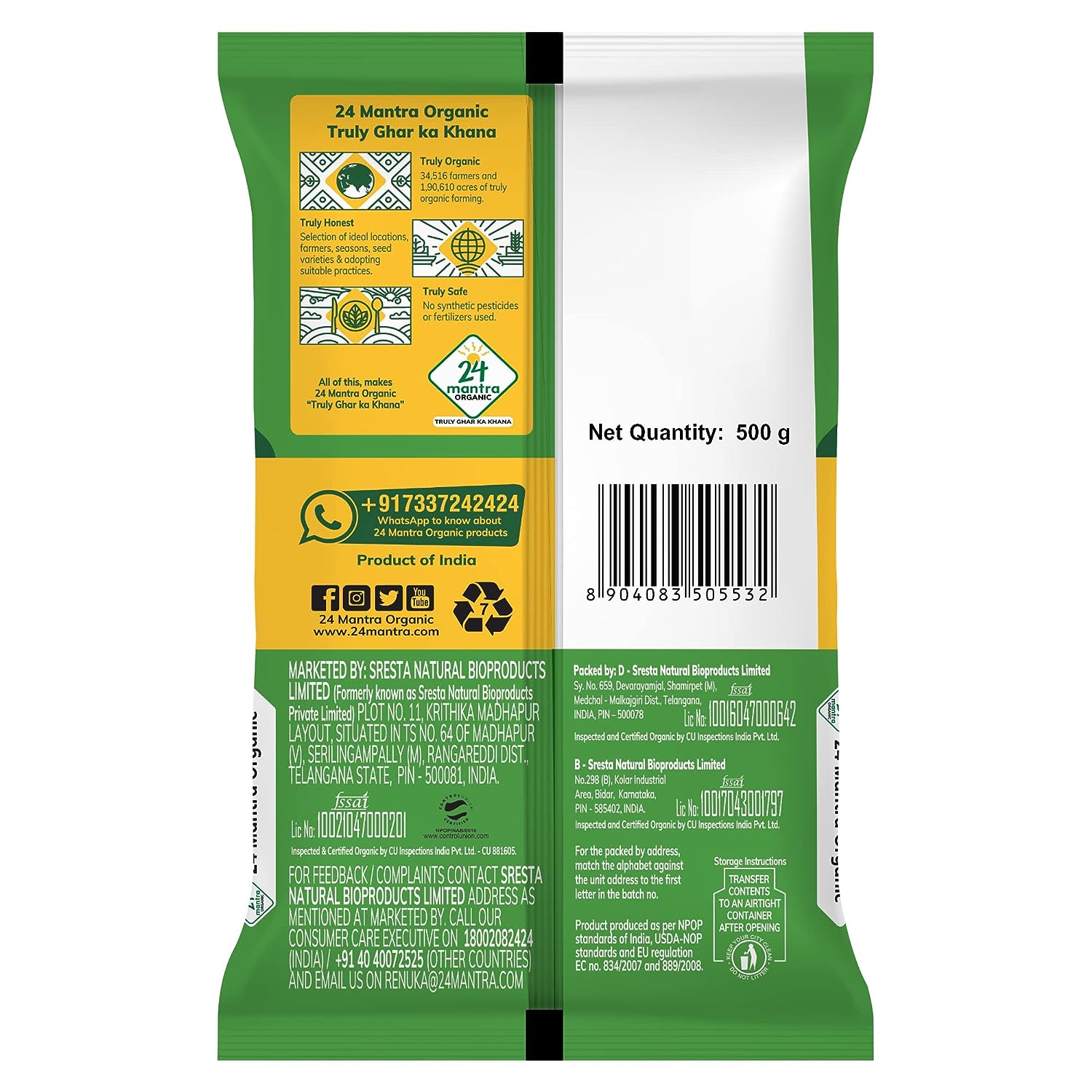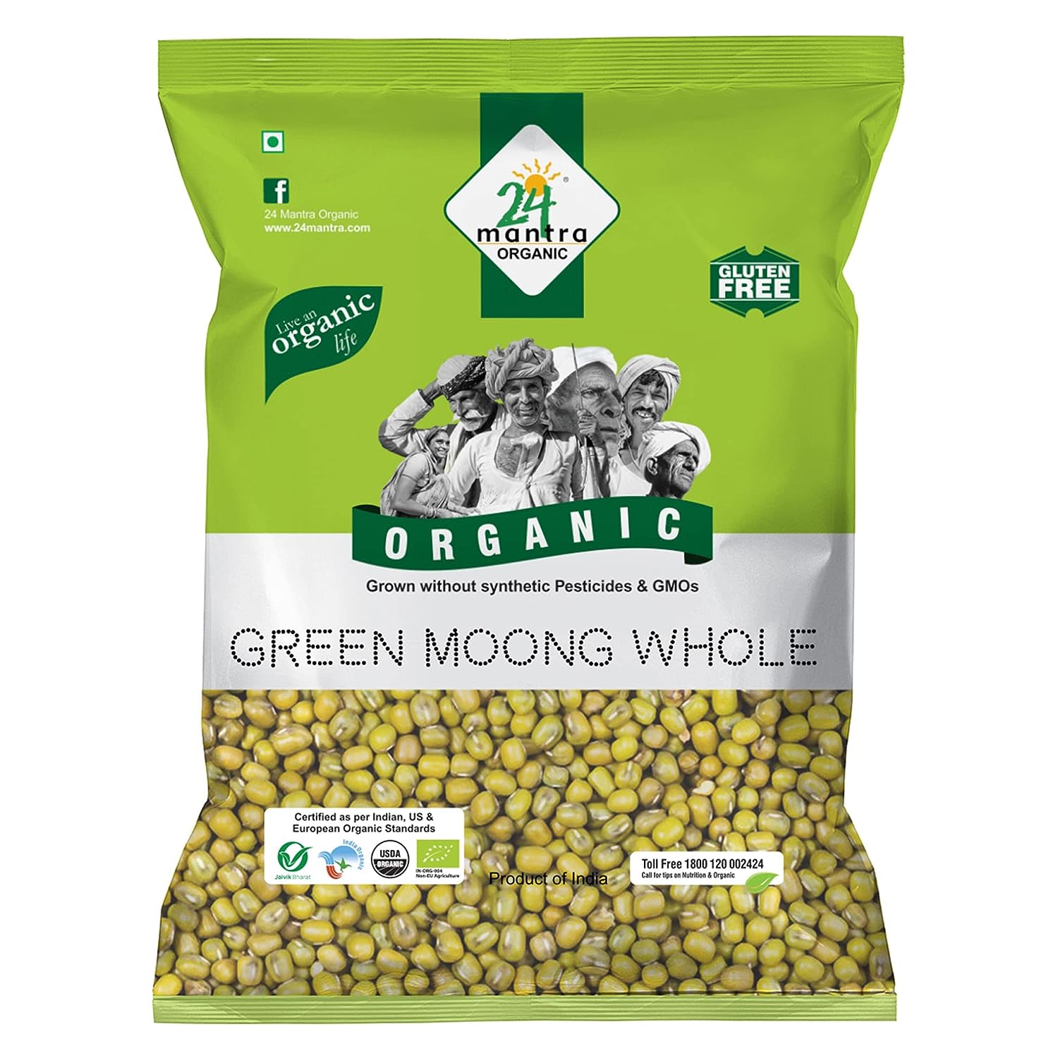 24 Mantra Organic Green Moong Whole - 500 gm