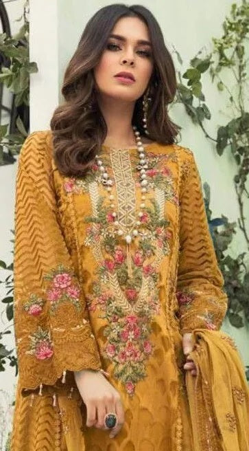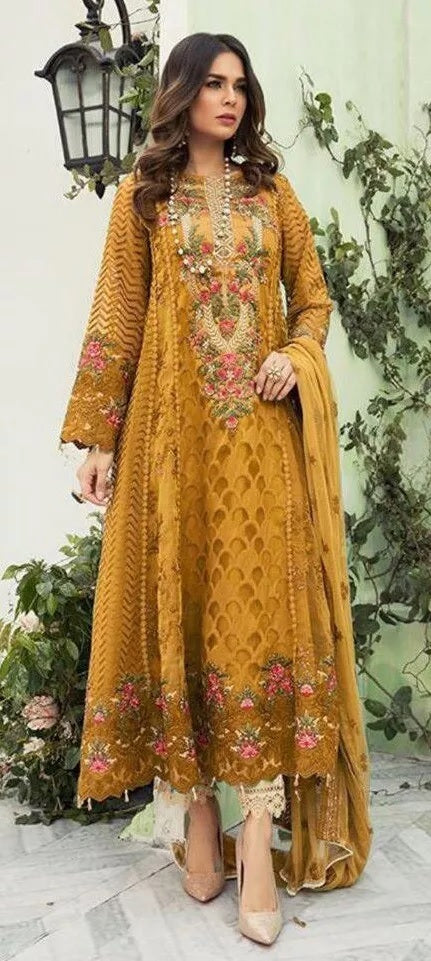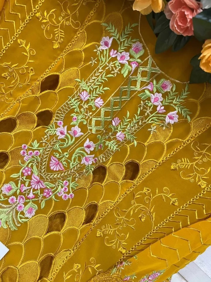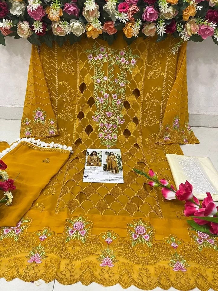 Mustard Faux Georgette Embroidery Work Salwar Kameez With Dupatta