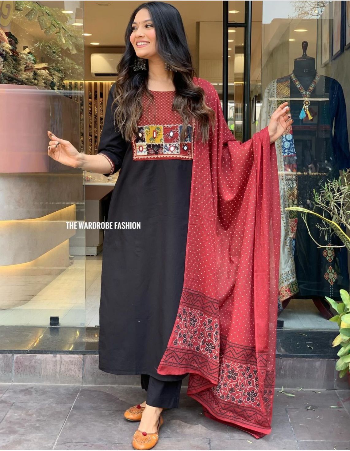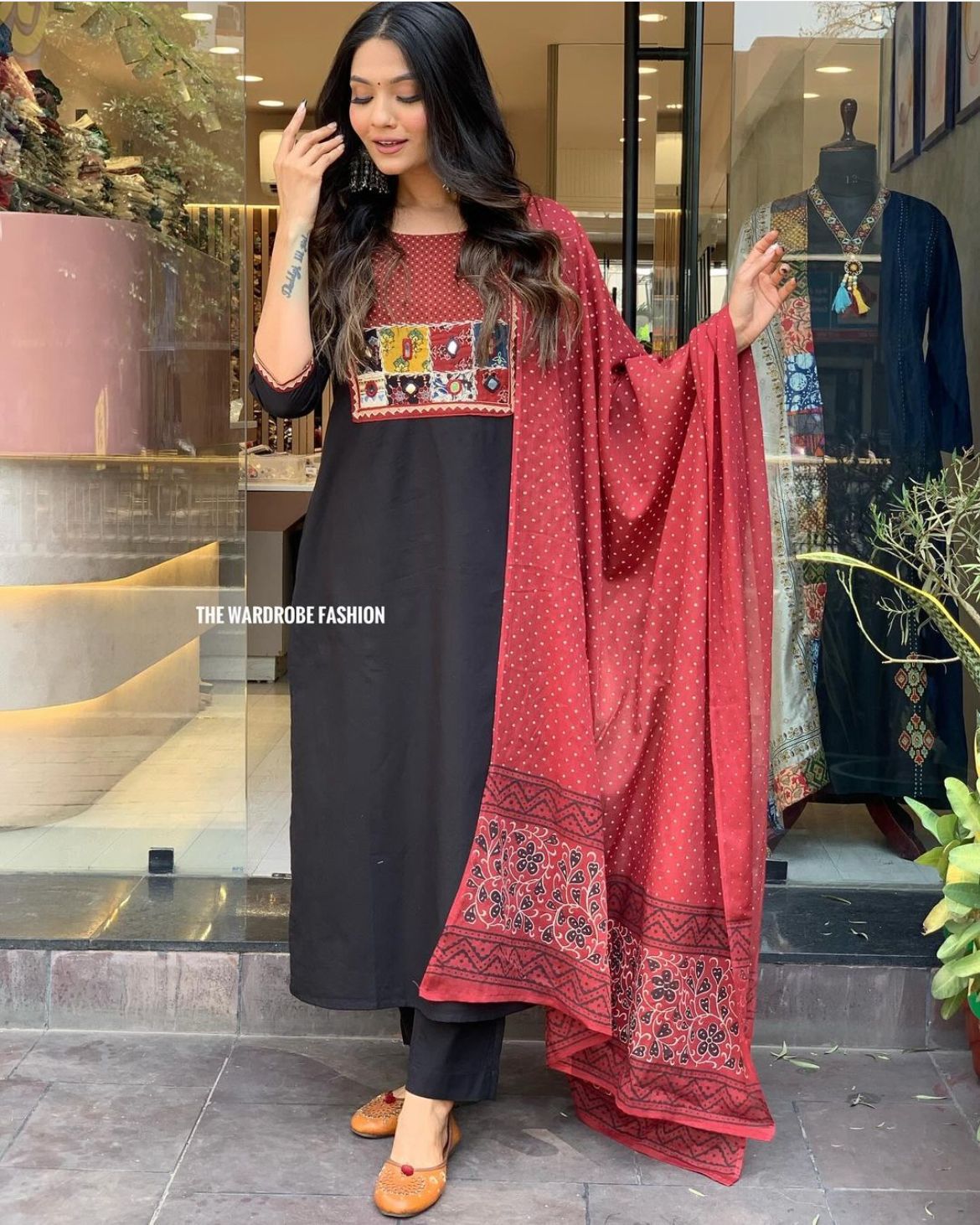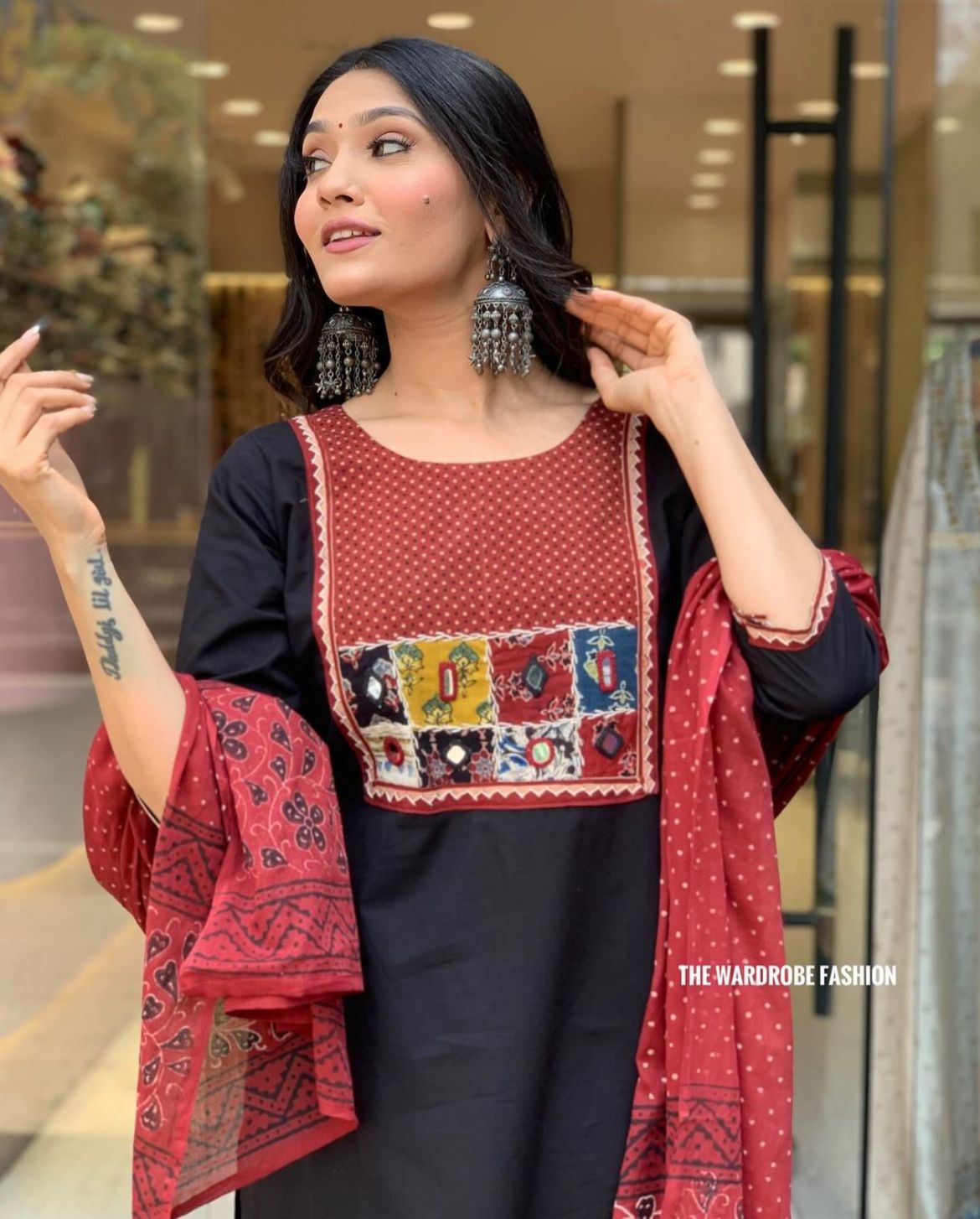 Rayon With Mirror Work Kurti Pant With Dupatta