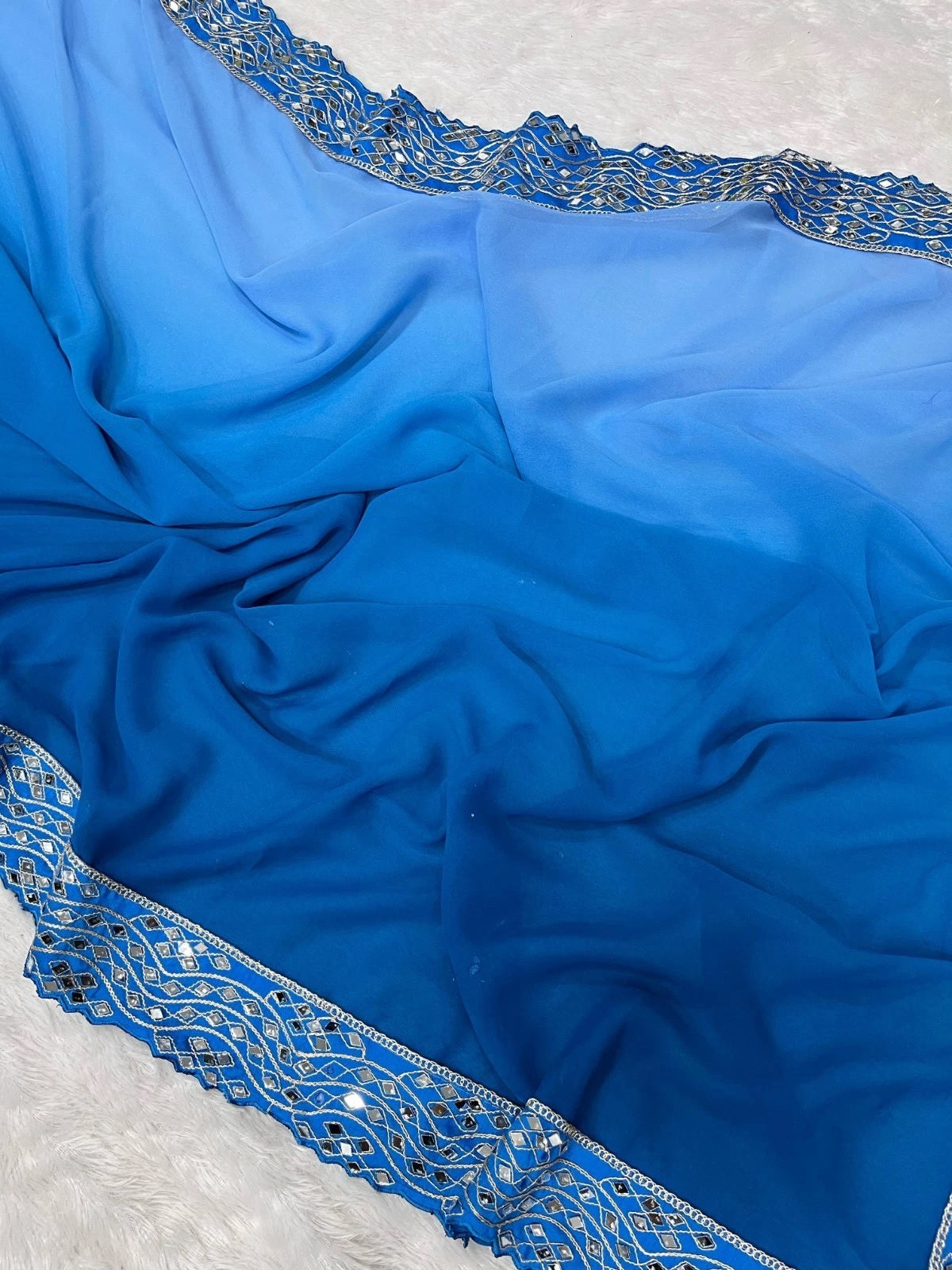 Classic Heavy Faux Georgette Dark to Light Shaded Saree With Blouse 11-RV