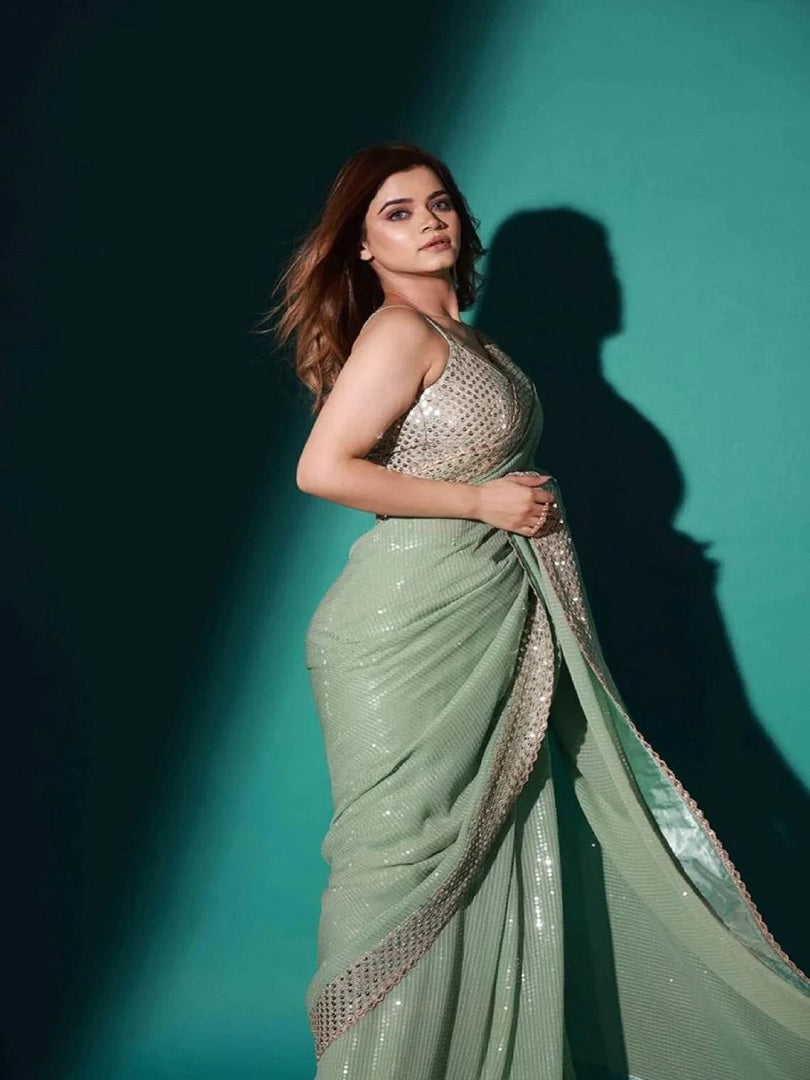 Georgette Embroidery Sequence Work With Sequence Cut Work Lace Saree