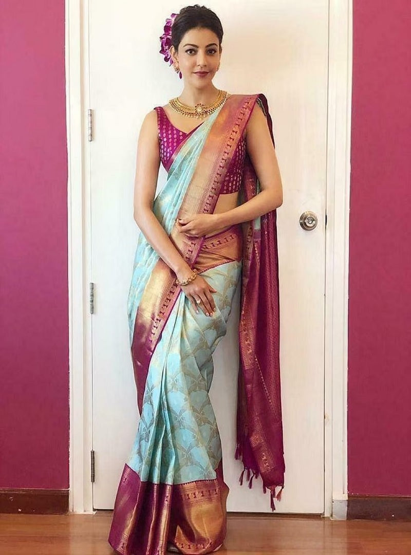 Sky Blue & Pink Kanchipuram Weaving Work Saree
