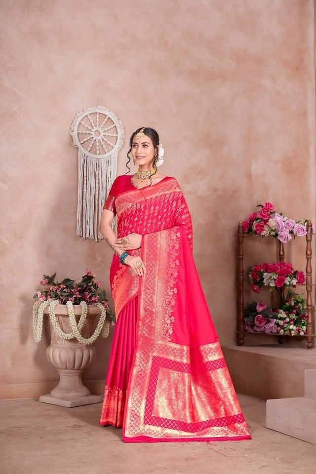 Soft Silk Weaving Banarasi Jari Work Wedding Wear Sari With Blouse 11-VF