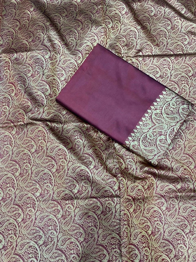Wine Soft Lichi Silk Jacquard Border Saree KP