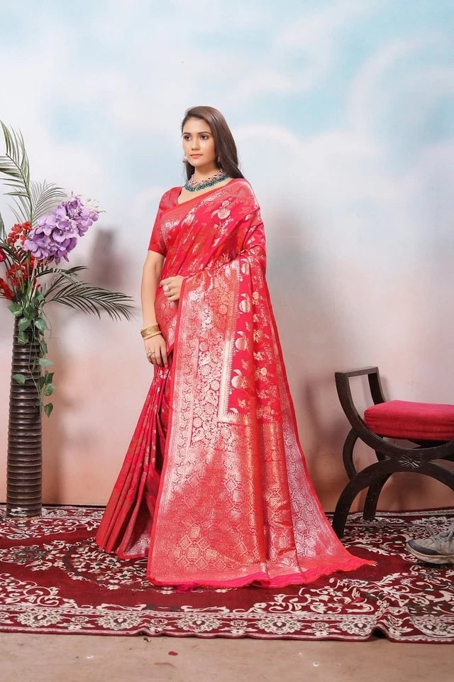 Women's Classic Soft Silk Weaving Banarasi Jari Work Sari With Blouse11-VF