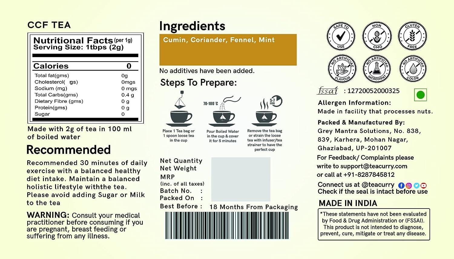 Teacurry CCF Tea - Cumin Coriander Fennel Tea - 30 teabags