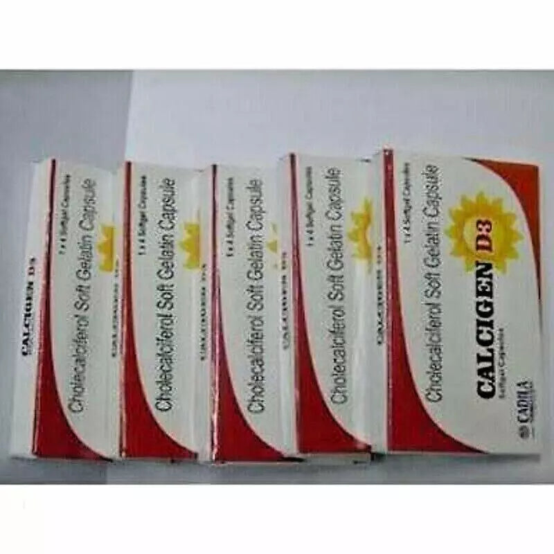 CADILA Calcigen D3 (Vitamin D3 - Cholecalciferol) 60000 IU - Pack of 5 * 4 Capsules