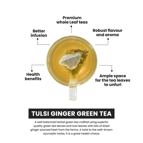 A well-balanced herbal green tea crafted using superior quality green tea leaves and tulsi leaves with bits of dried ginger sourced fresh from the farms. A twist to the well-known ayurvedic herbs, it is a great health choice.
