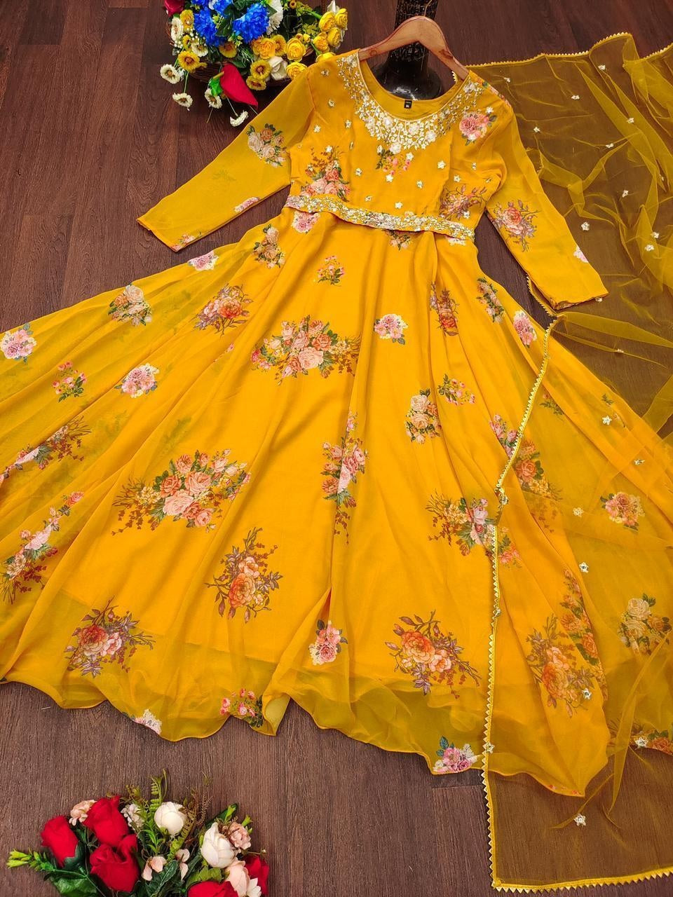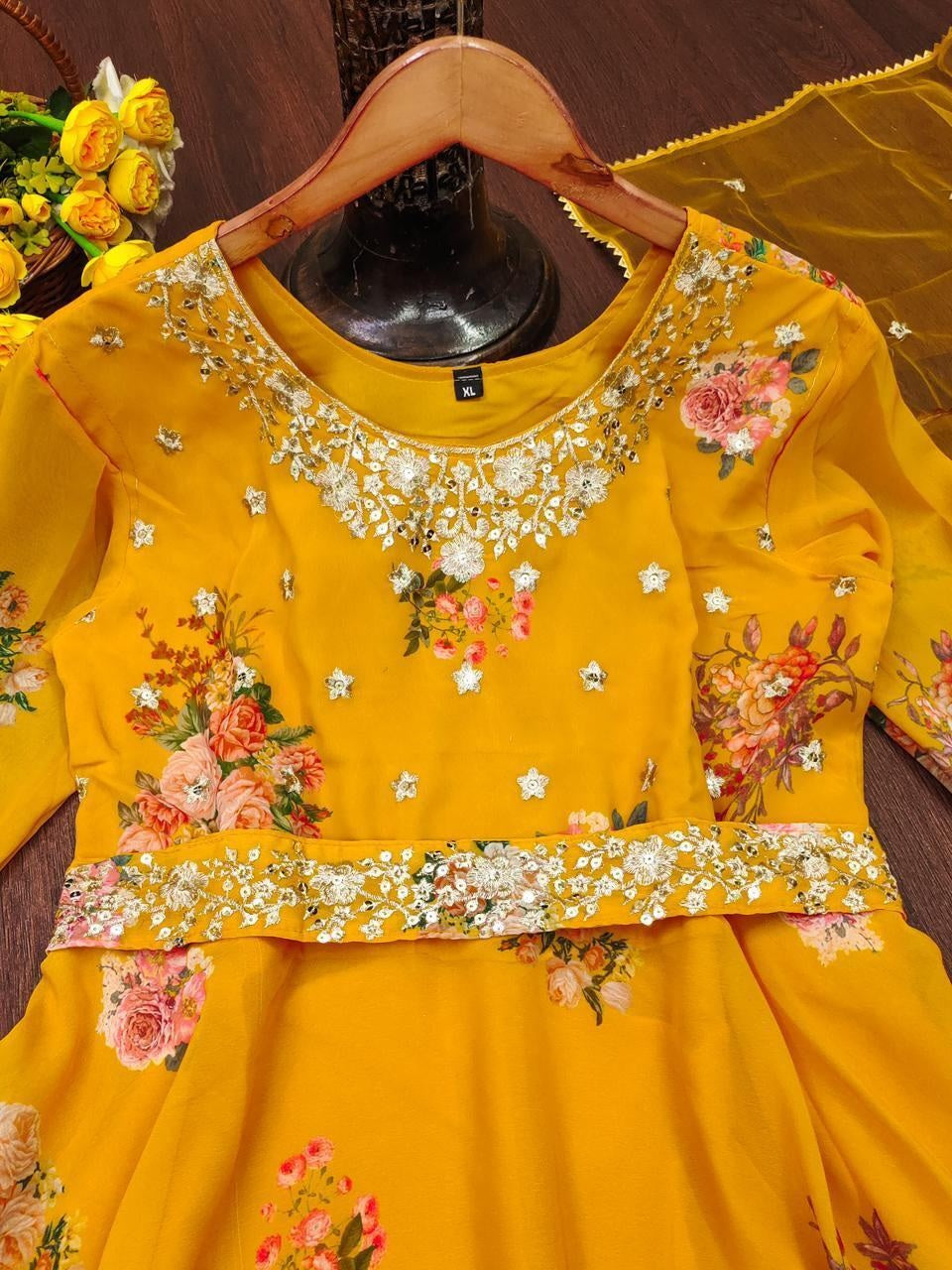 Georgette With Digital Print Design & Embroidery Work Gown Anarkali Suit
