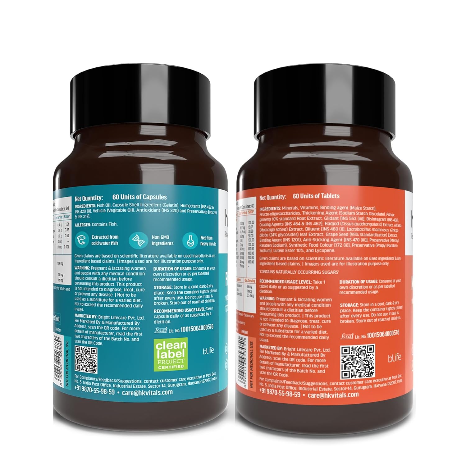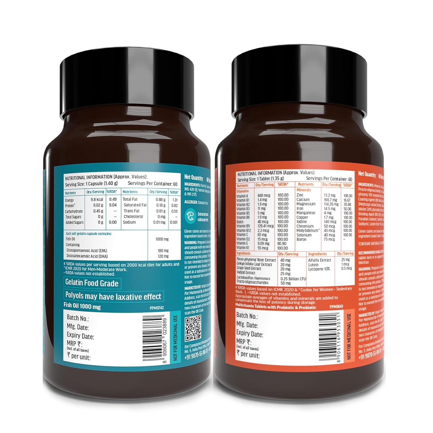 HealthKart hk vitals Fish Oil and Multivitamin with probiotics (60 Tablets Each) Combo Pack