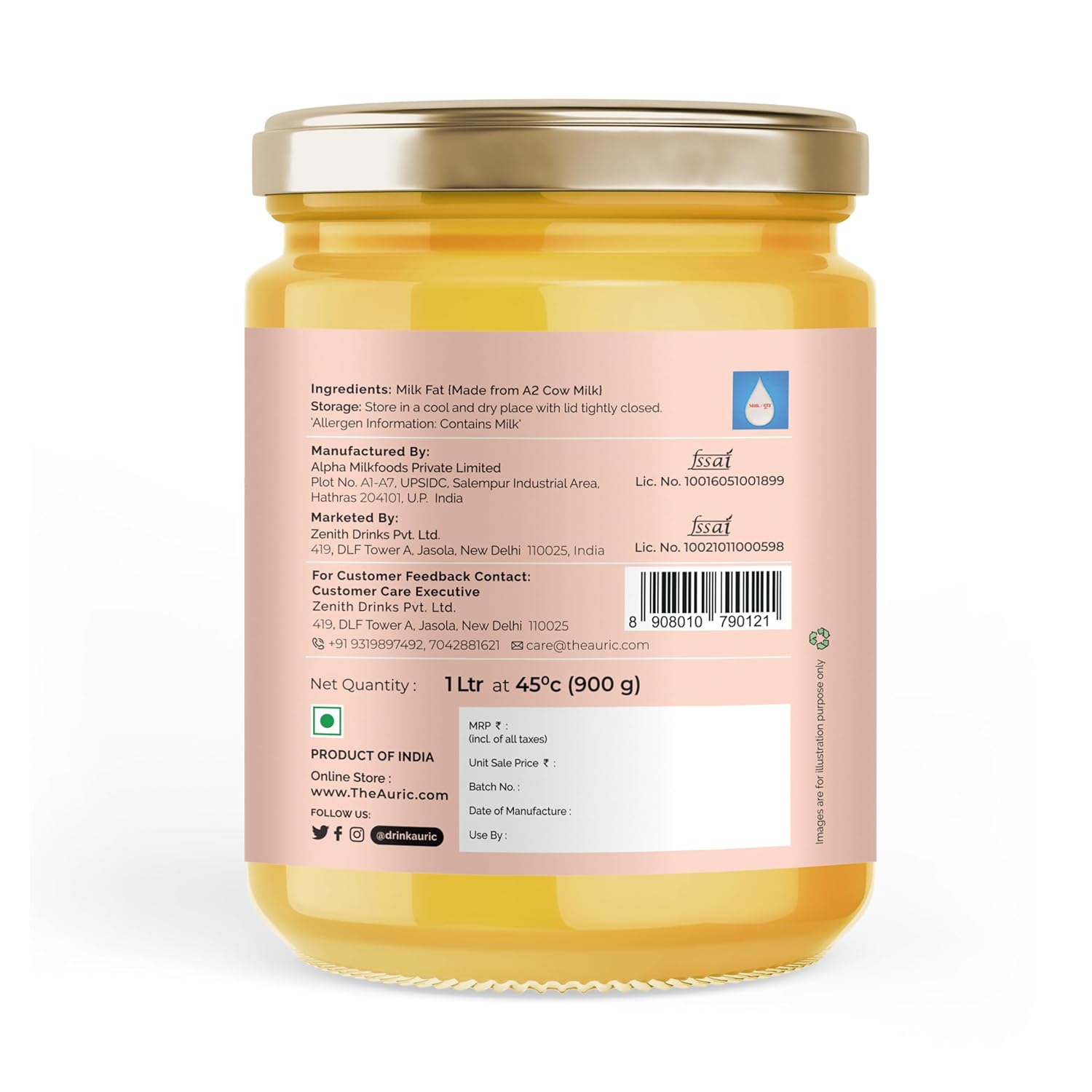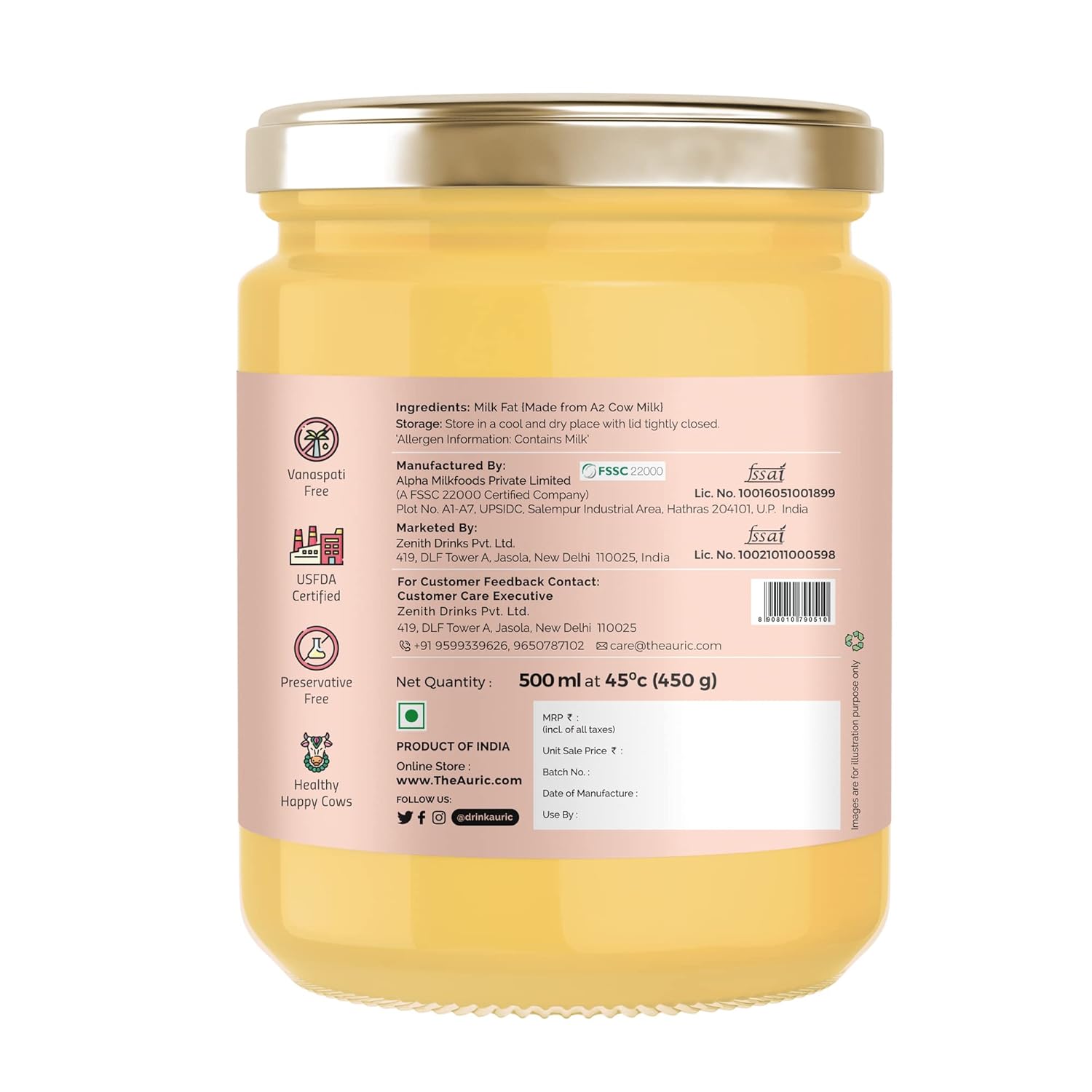 Auric Bilona Cow Ghee 1 Litre Glass Jar