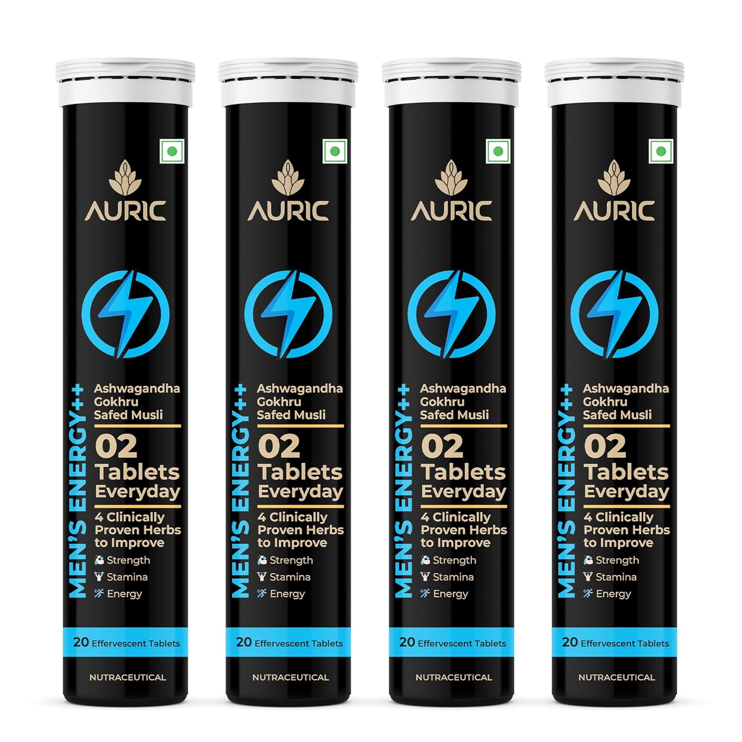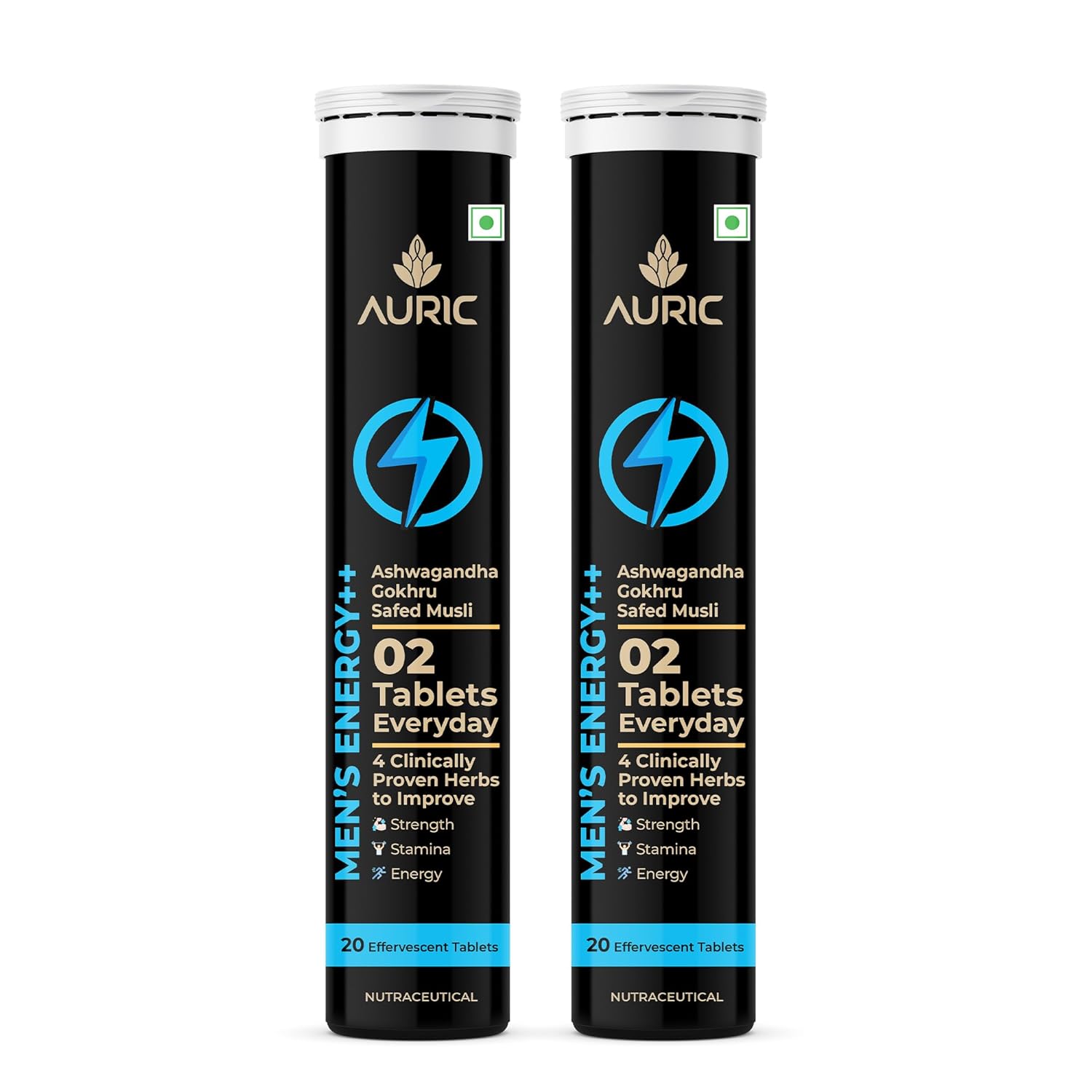 Auric Men’s Energy++ – Herbal Stamina & Vitality Support Fizzy Tablets (20 Tablets)