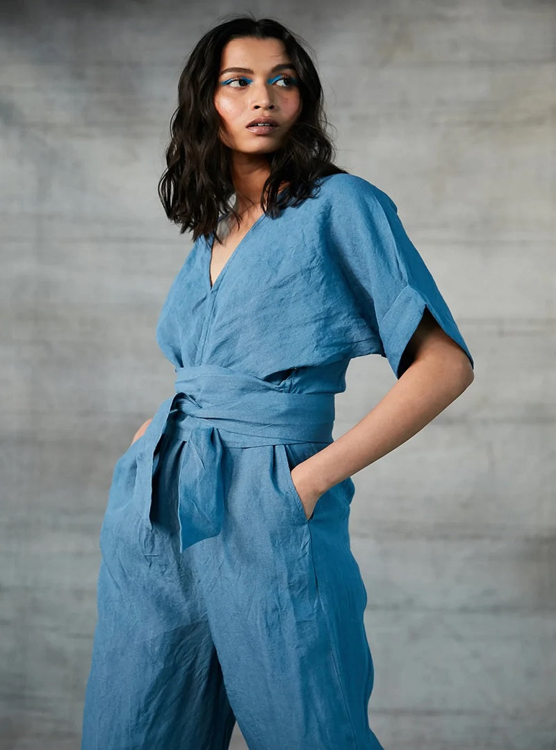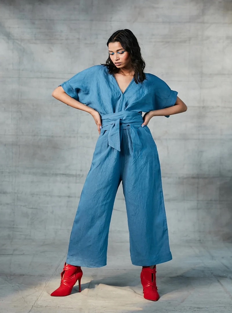 Cornflower Blue Linen Jumpsuit For Women