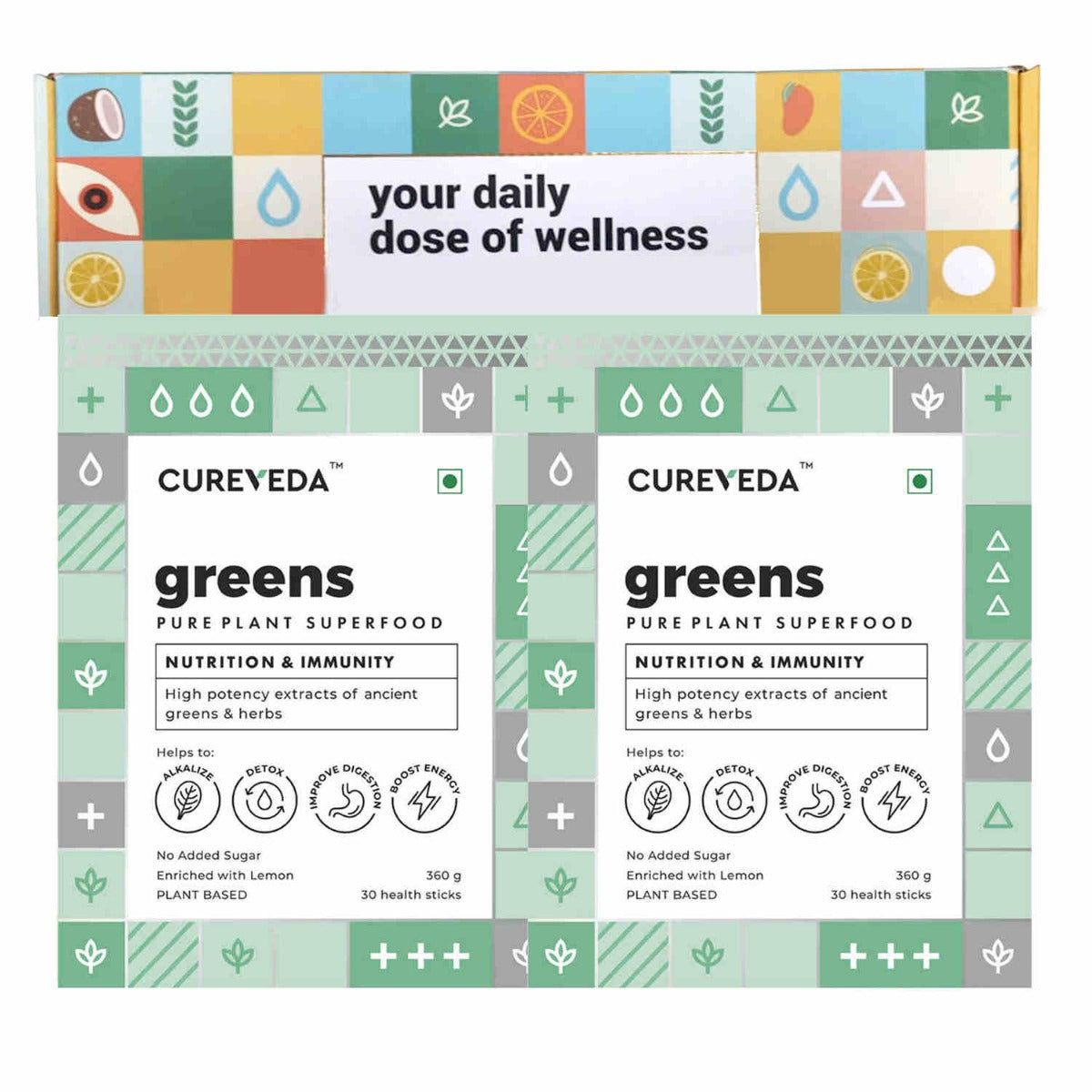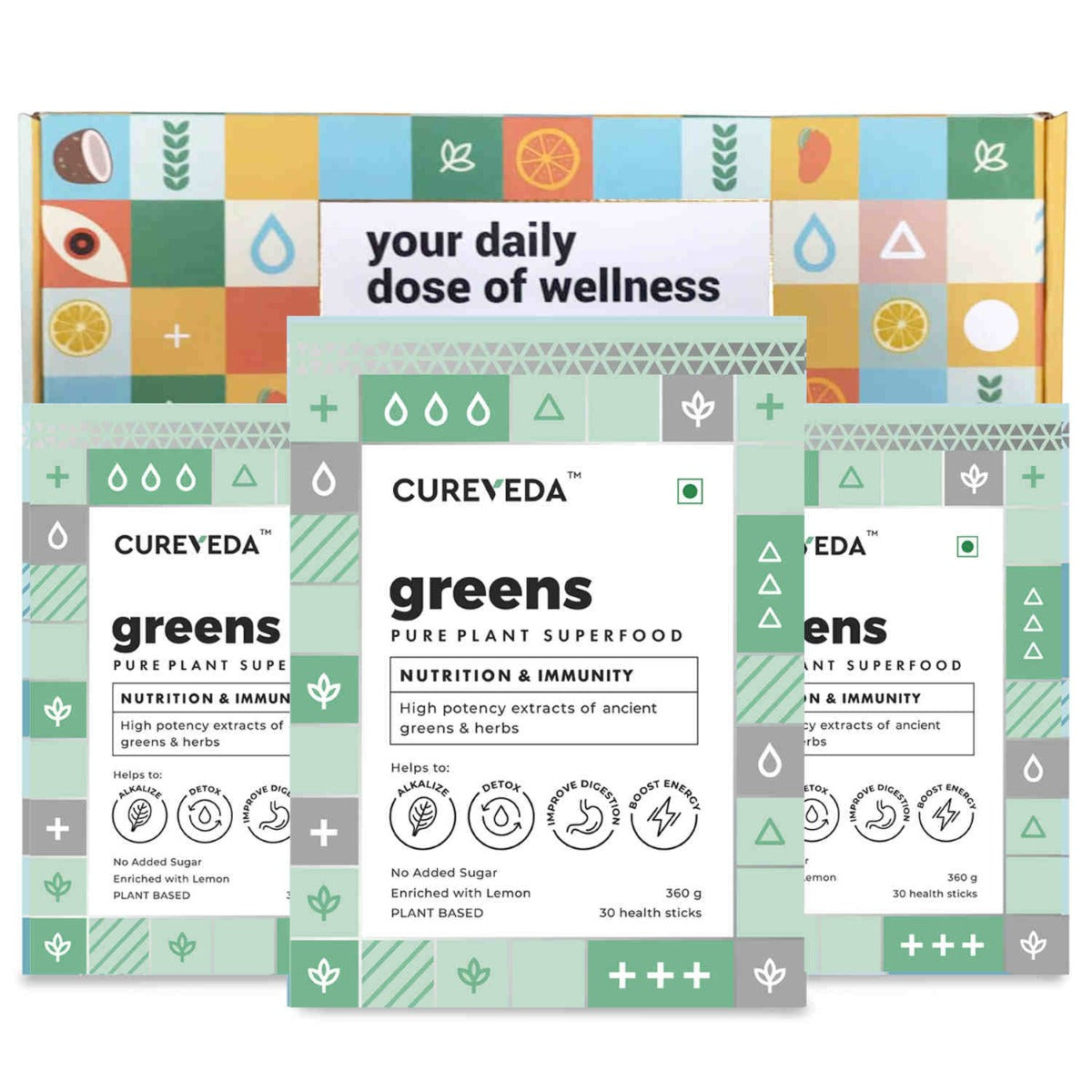 Cureveda Greens Superfood Powder – 360g | Vegan Plant-Based Nutrition Blend