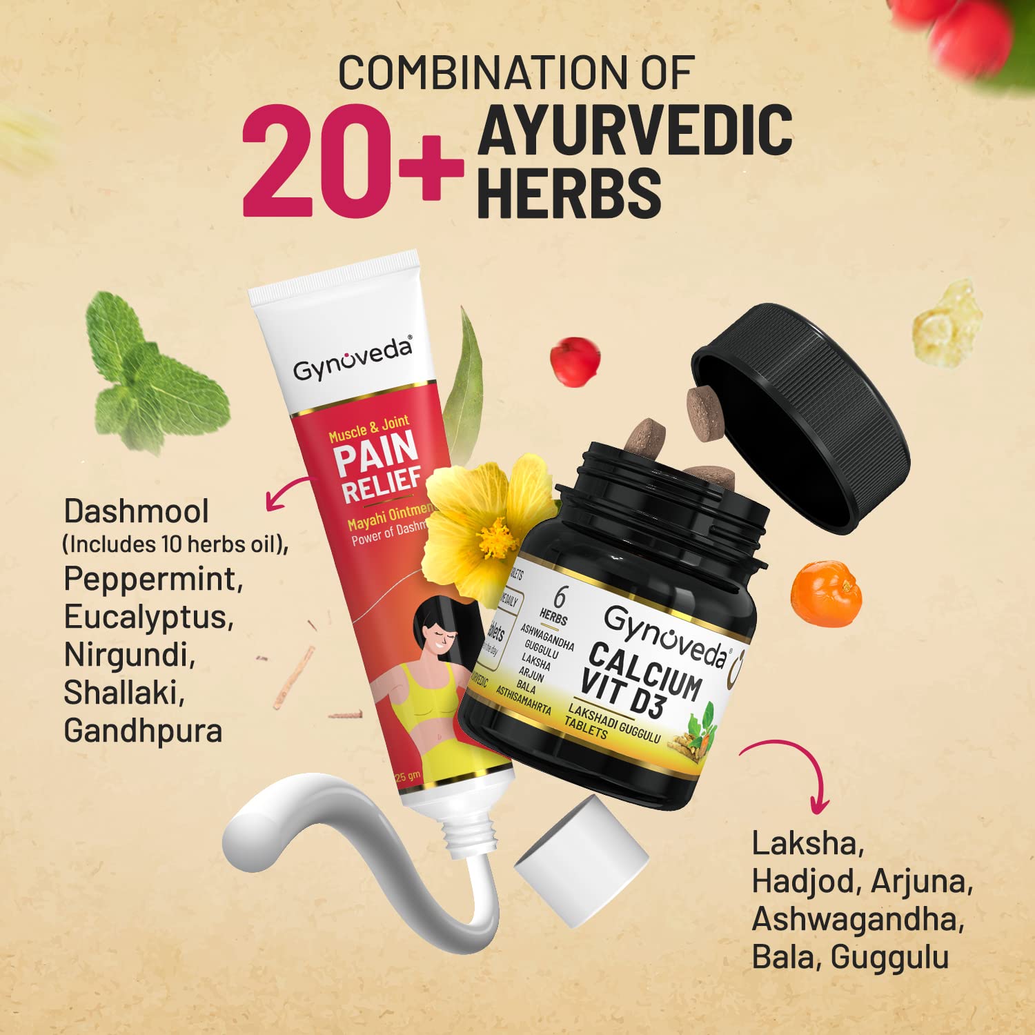 Gynoveda Calcium Vit D3 Tablets & Pain Relief Ointment Combo