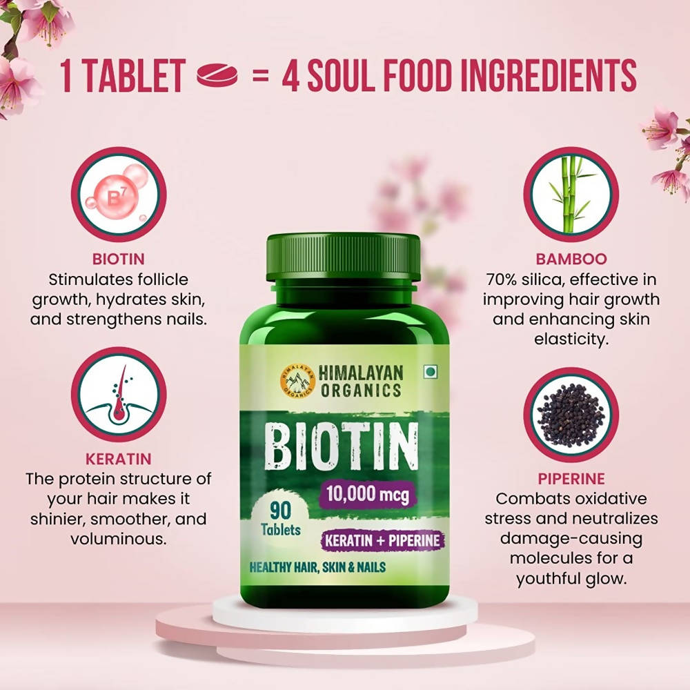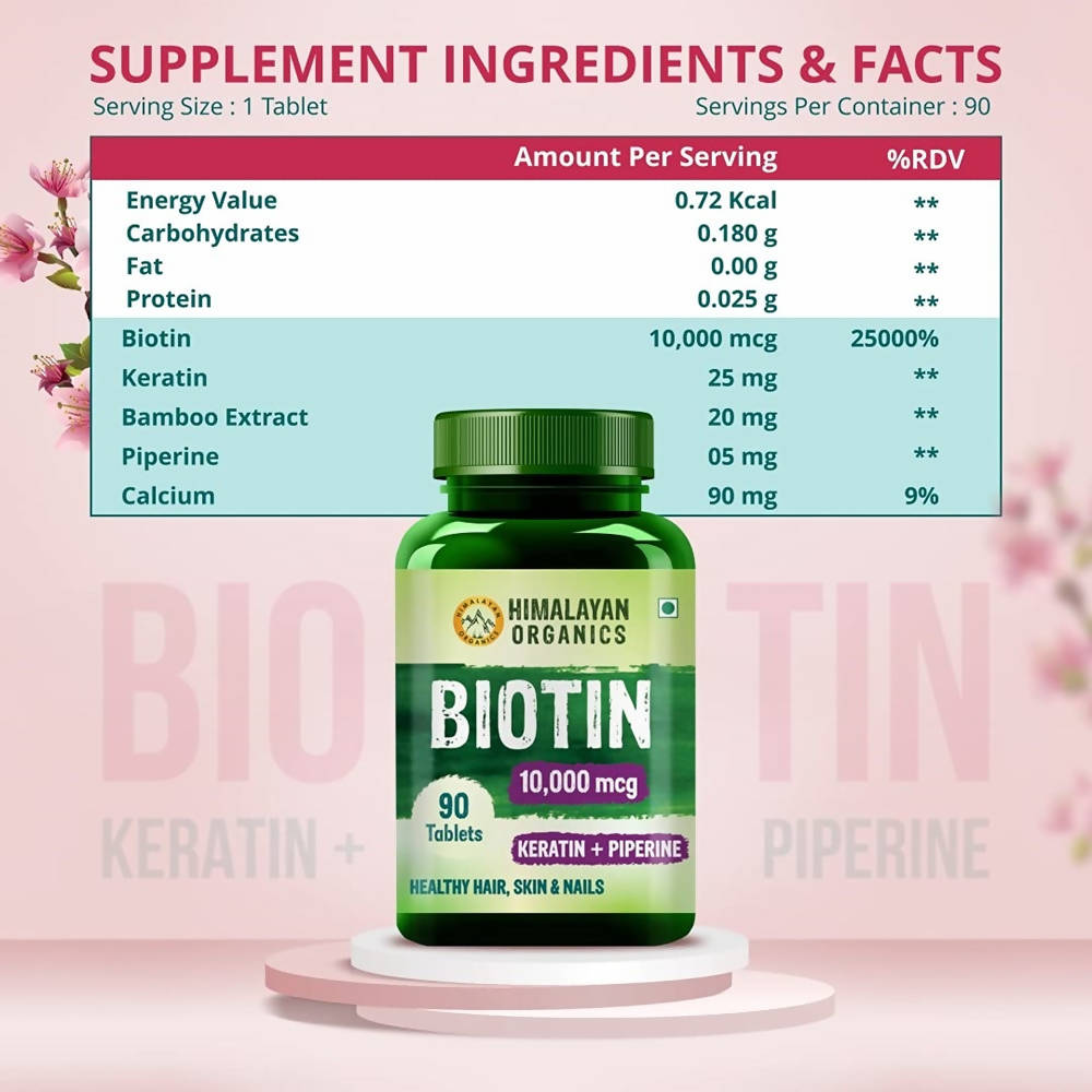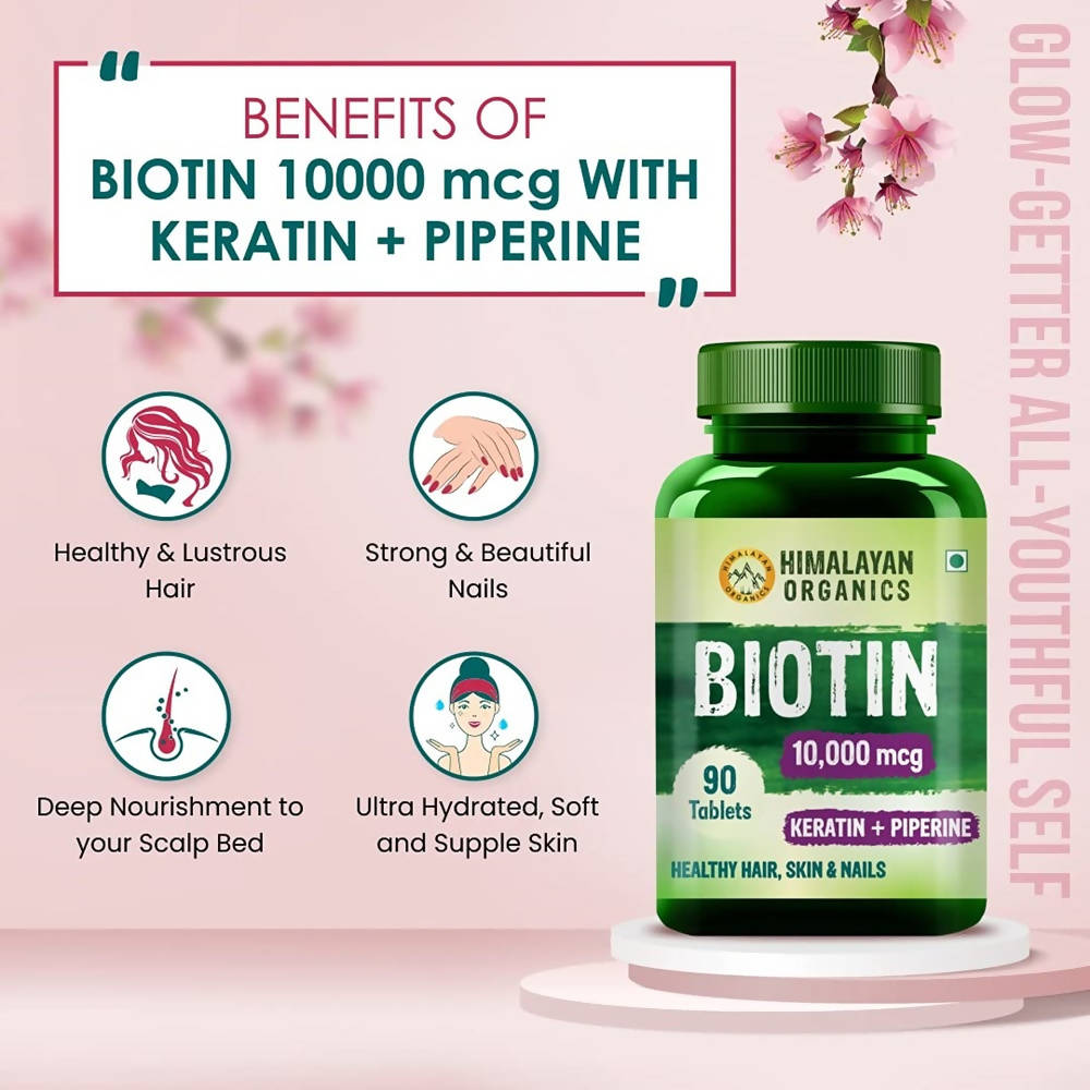 Himalayan Organics Biotin 10000 Mcg with Keratin + Piperine Tablets