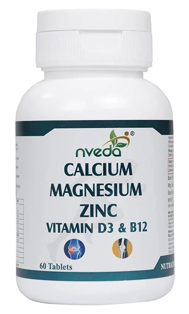 Nveda Calcium Magnesium Zinc Vitamin D3 & B12 Tablets -60 tabs - Pack of 1