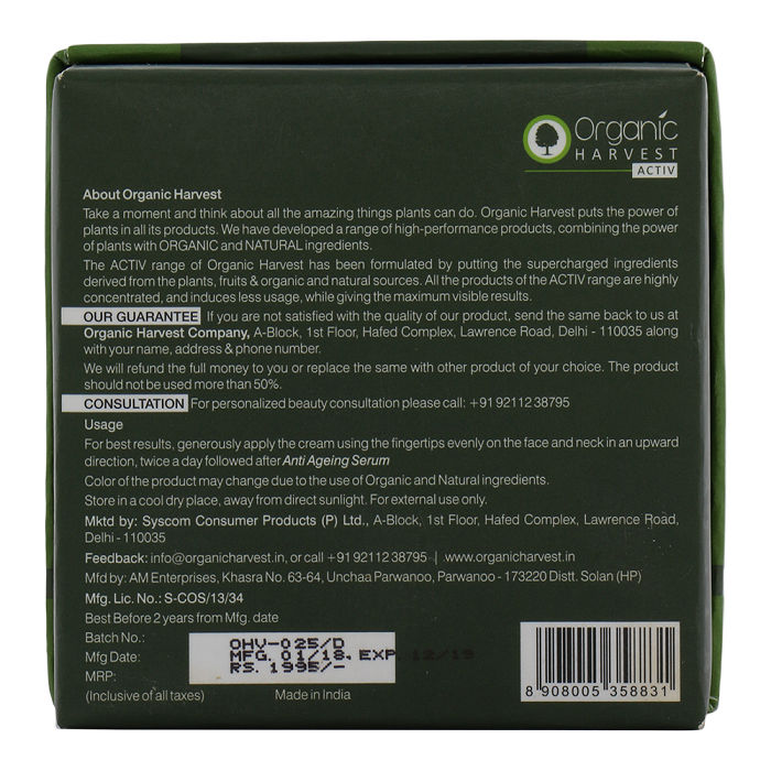Organic Harvest Activ Juvenescence Anti Ageing Cream - 50 gms