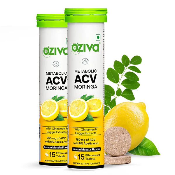 OZiva Metabolic ACV Moringa Effervescent Lemon Masala Flavor - 15 Tablets - Pack of 2