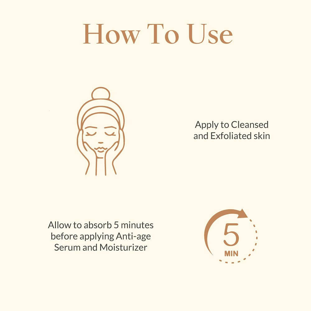 • Allow absorbing 5 minutes before applying Anti-age Serum and Moisturizer.