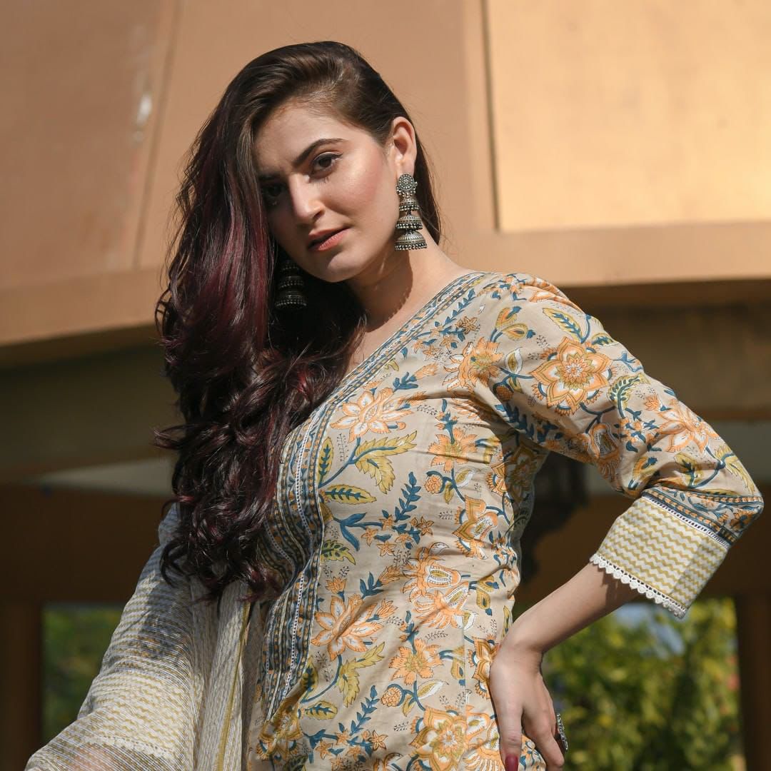 Cotton Beautiful Floral Print & Lace Work Salwar Kameez