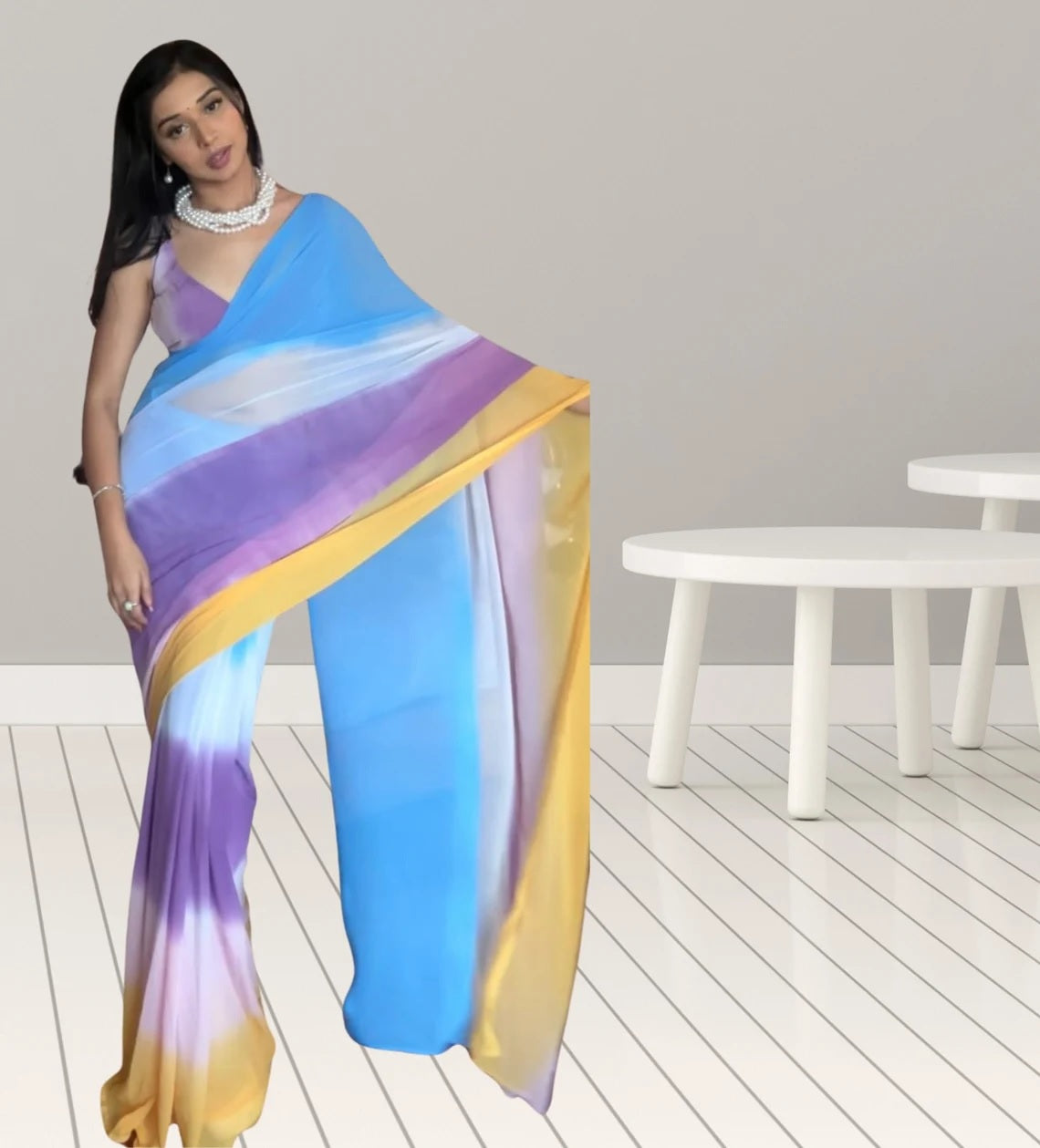 Pure Soft Georgette Silk With Multi Color Ready To Wear Saree