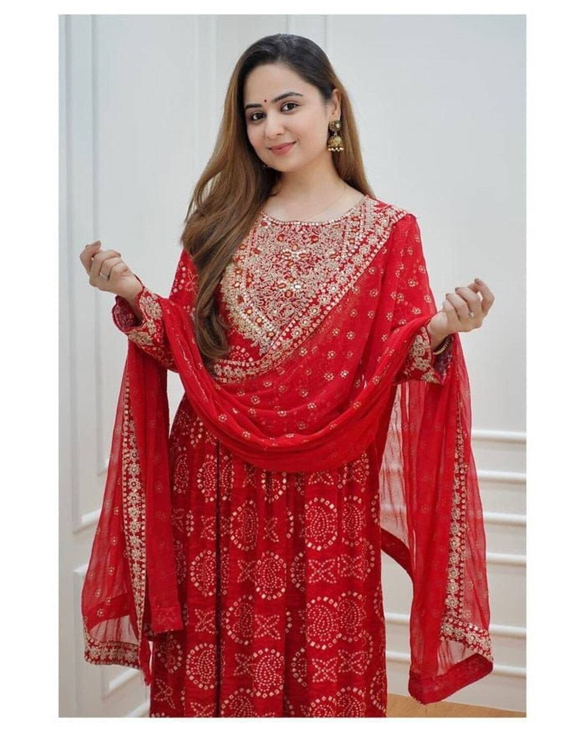 Heavy Rayon, Embroidery Work Salwar Kameez With Dupatta