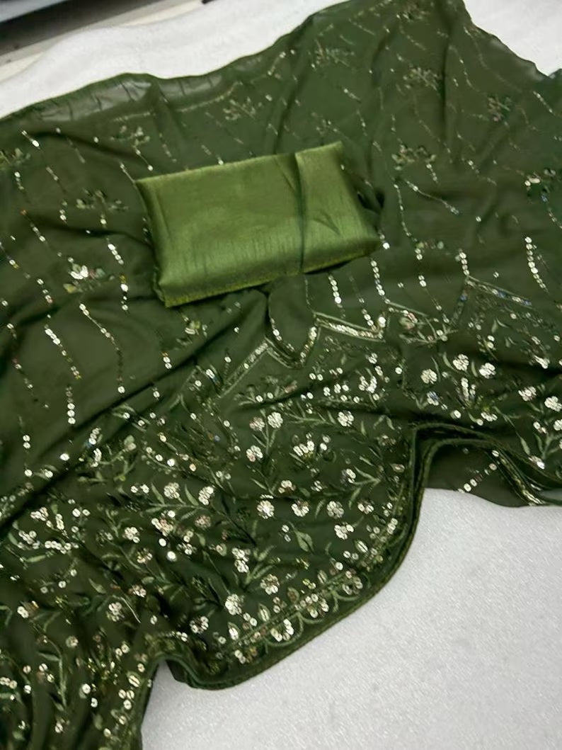 Mehendi Color Georgette Saree