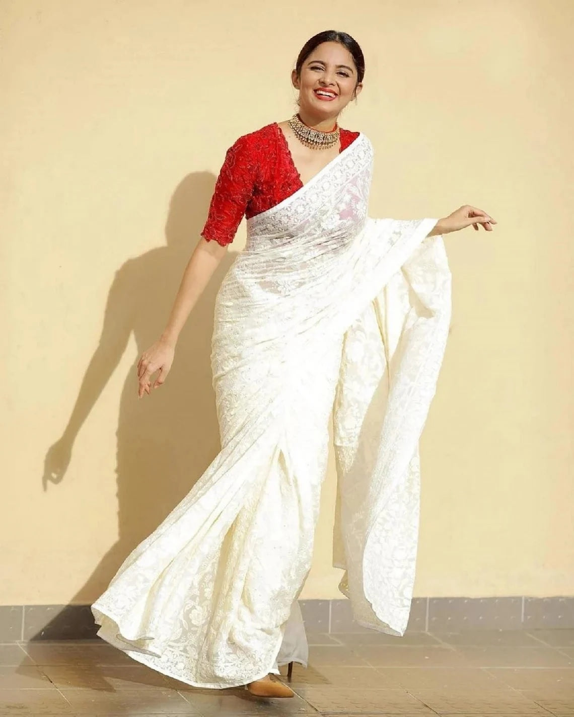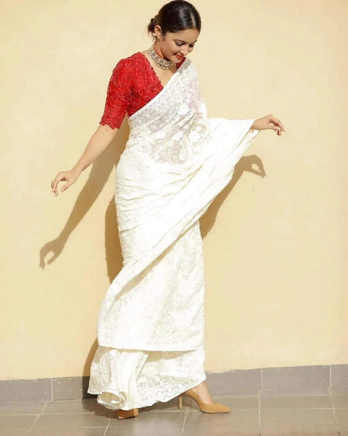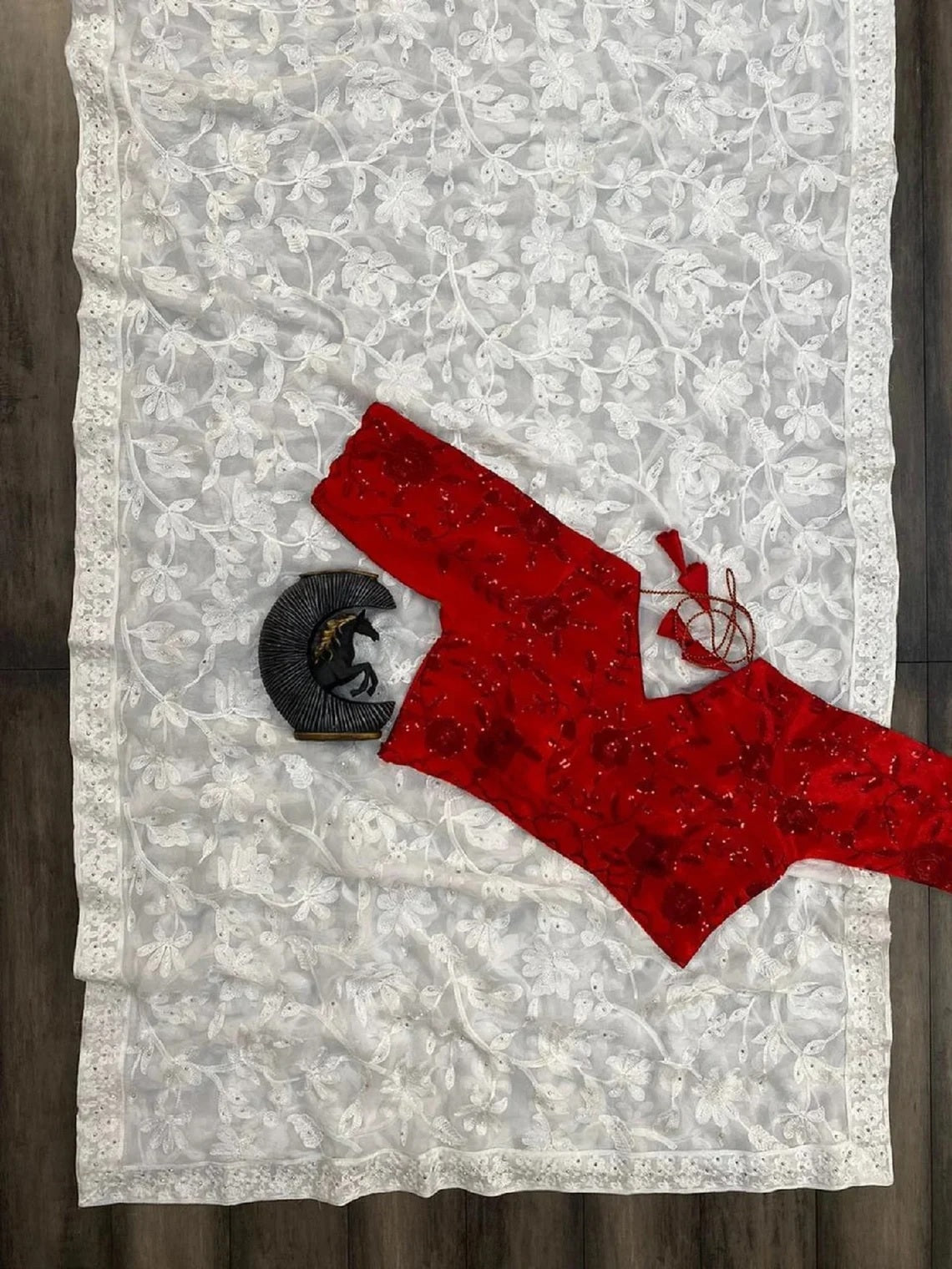 Saree Fabric :- Georgette With Sequence Cotton Thread chainstitched Work And Stone Handwork