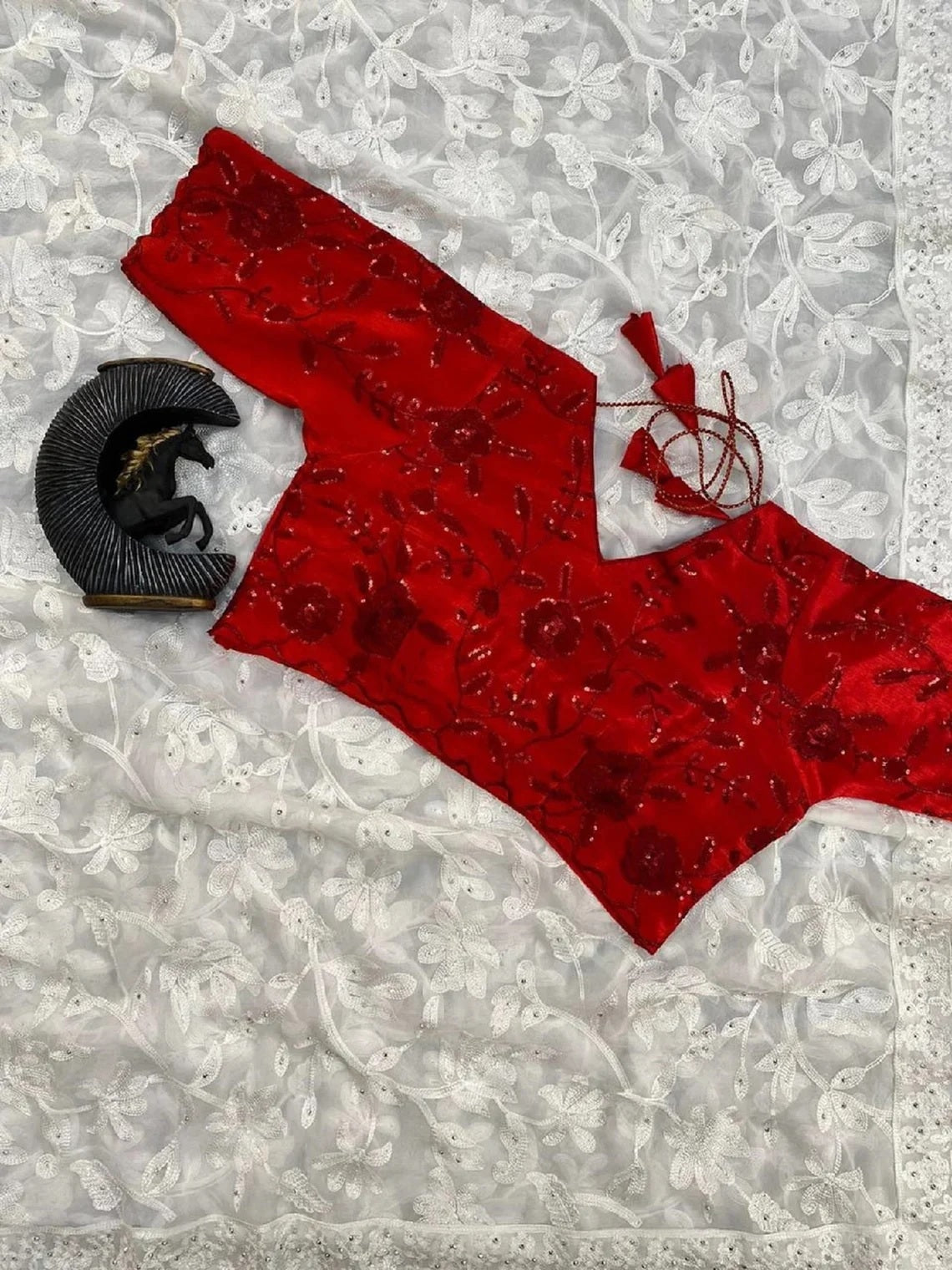 Blouse Fabric :- Banglori Satin With Sequence Cotton Thread chainstitched Work