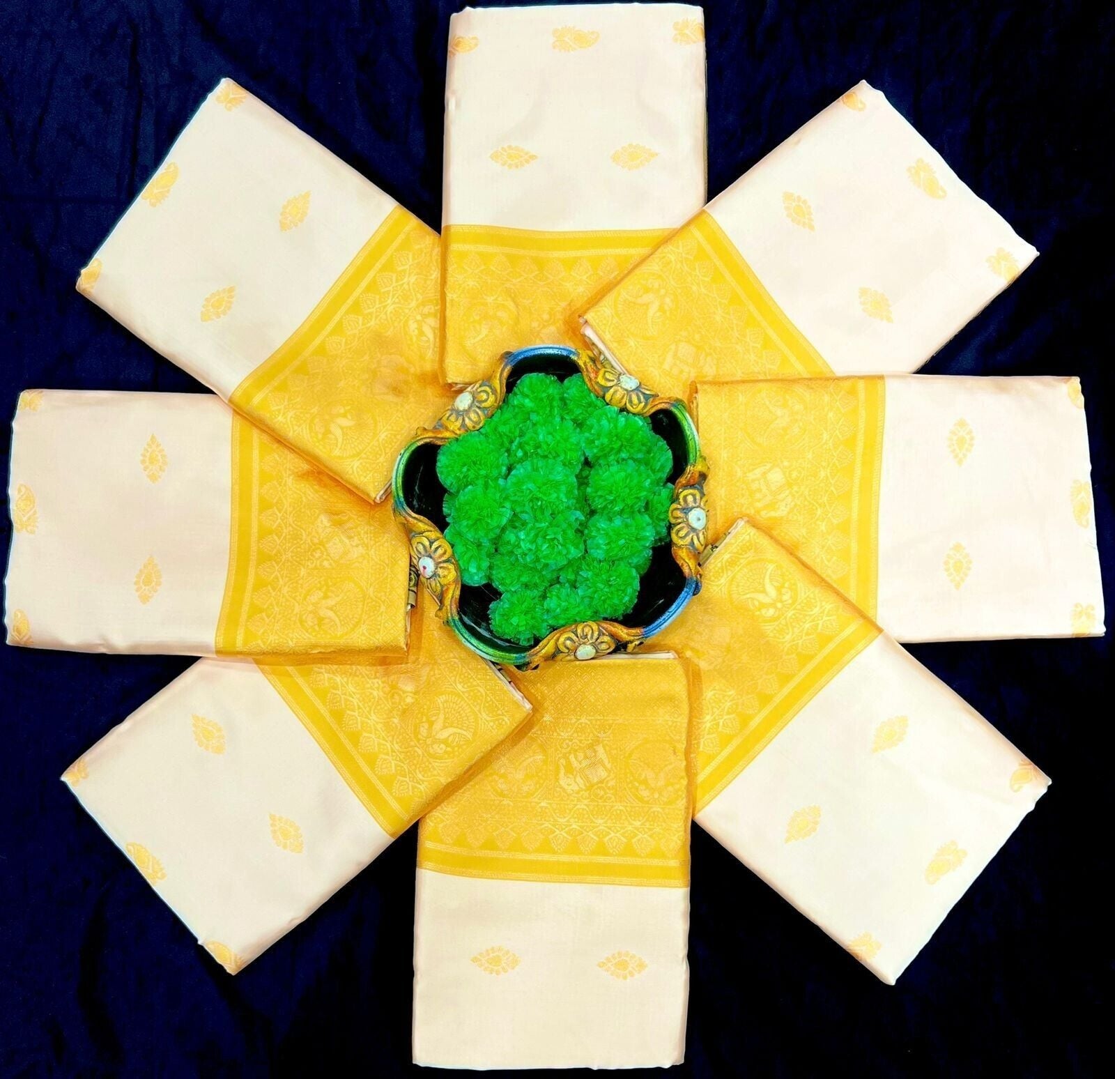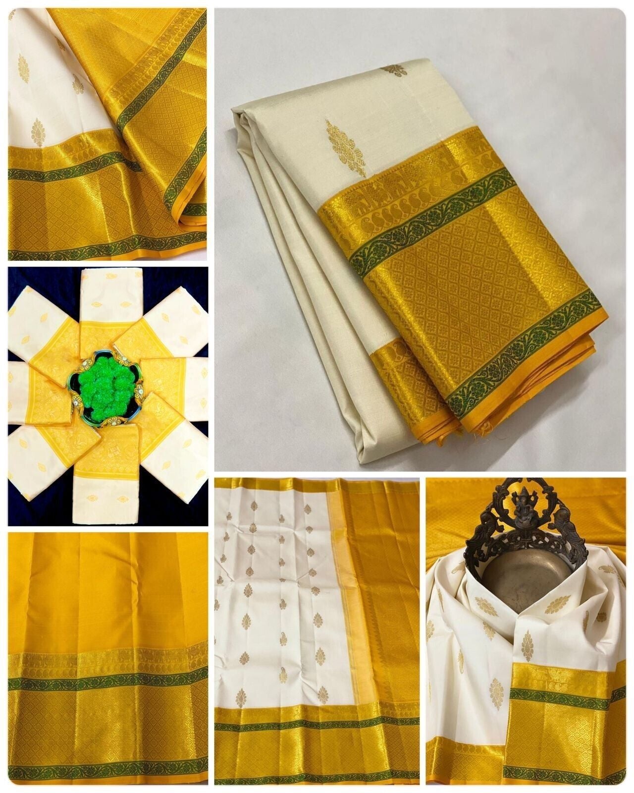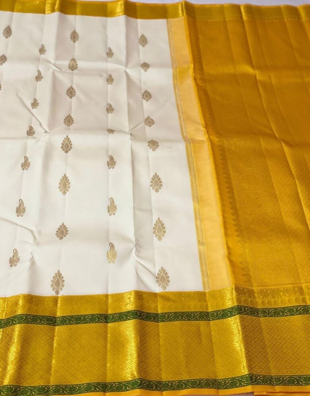 Yellow and White Soft Lichi Silk Saree