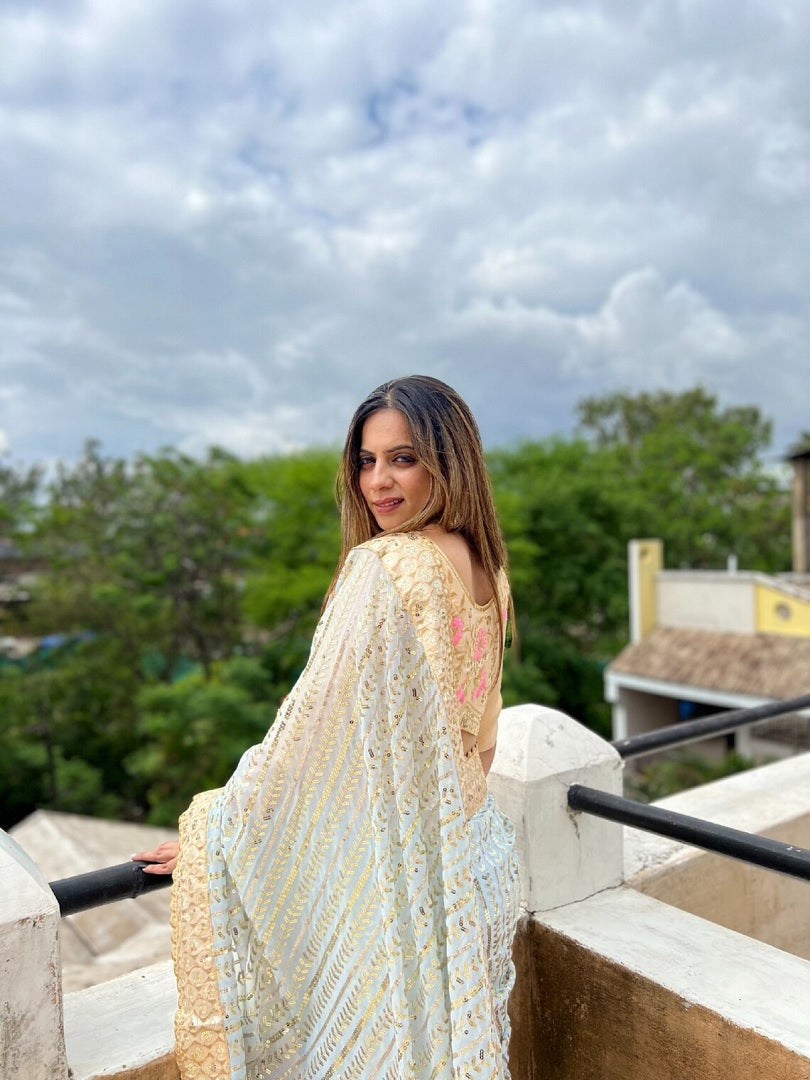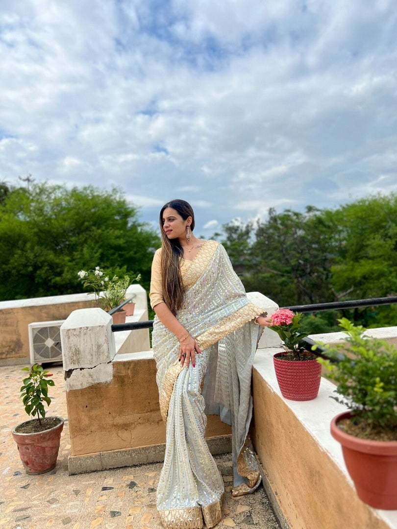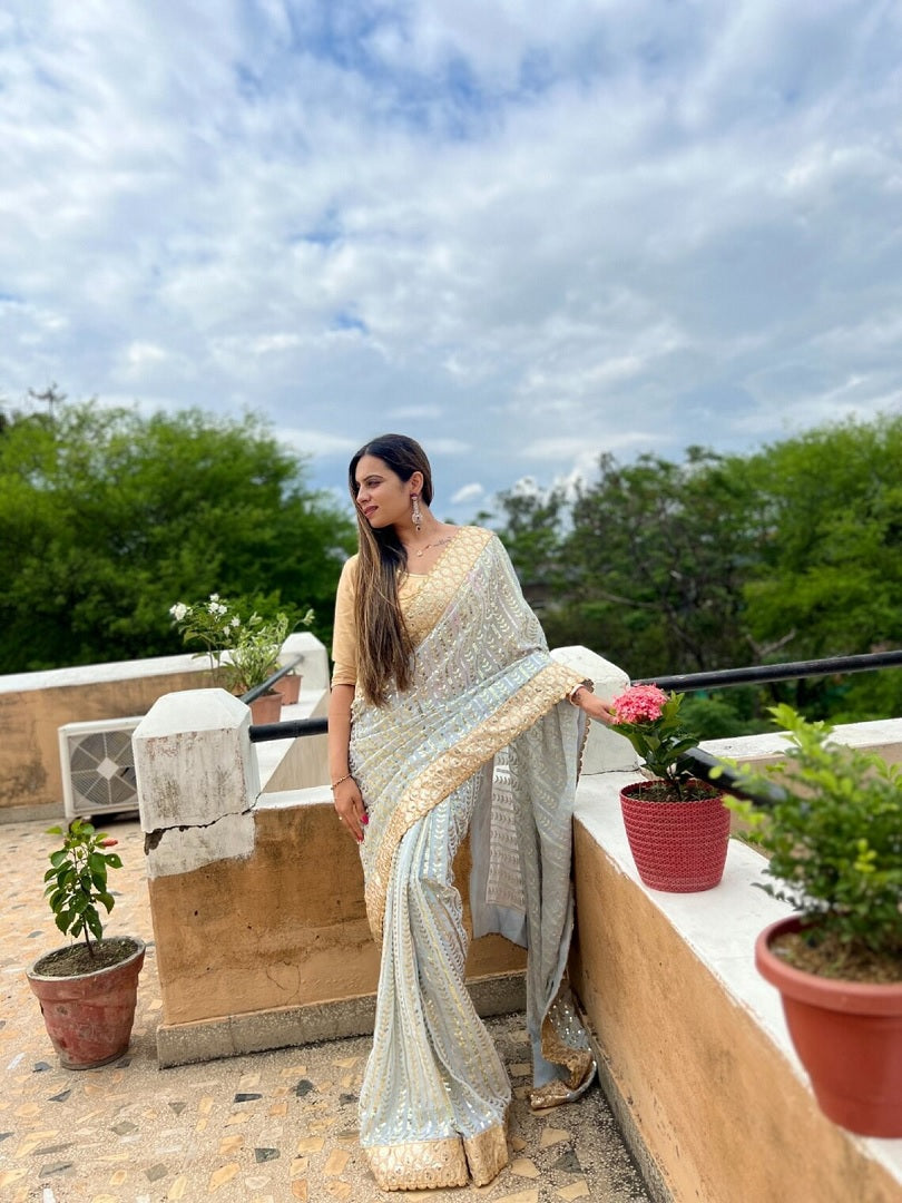 Sky Blue Georgette Embroidery Sequence Work Saree