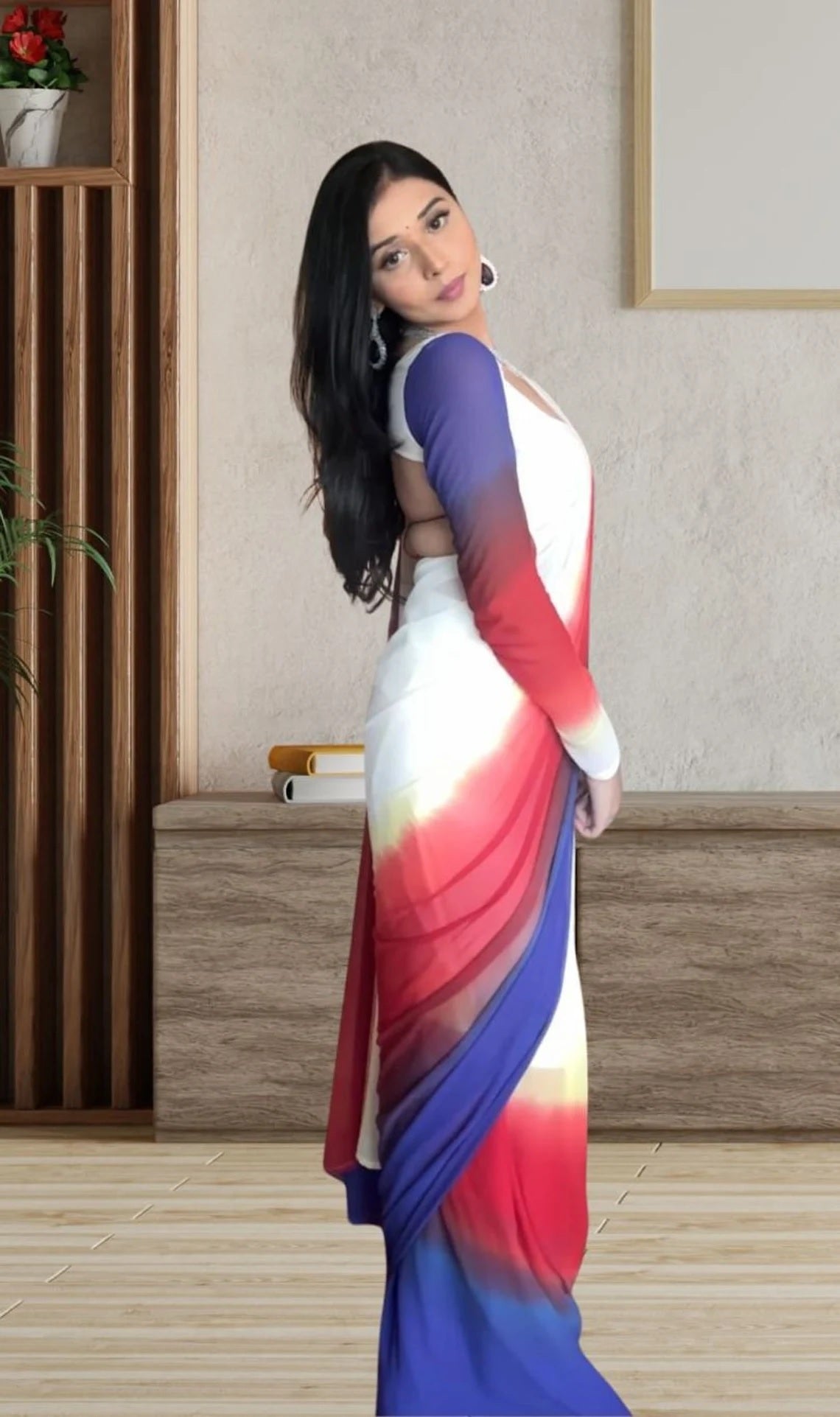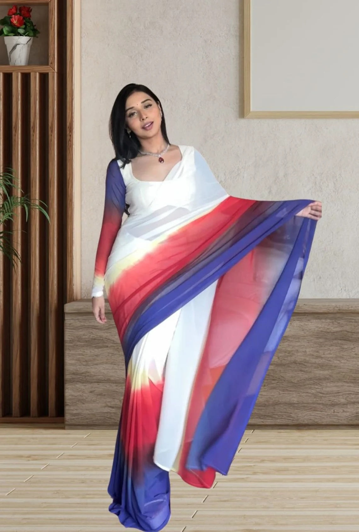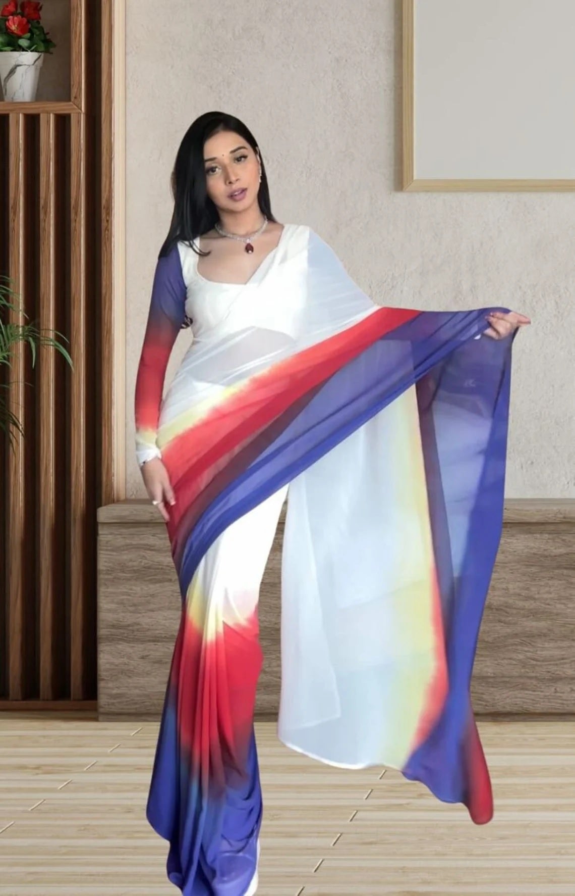 Pure Soft Georgette Ready To Wear Multi Color Saree With Blouse