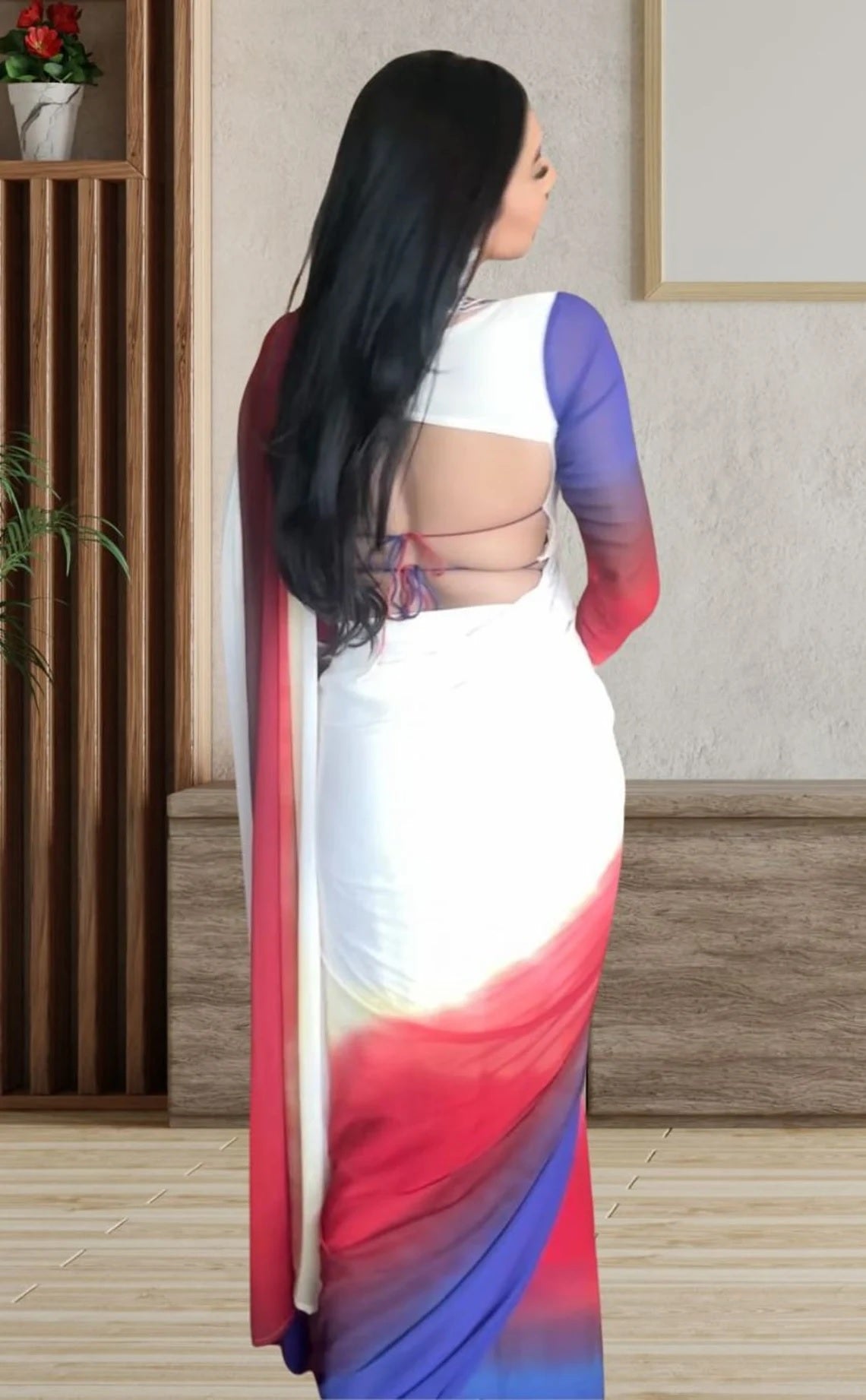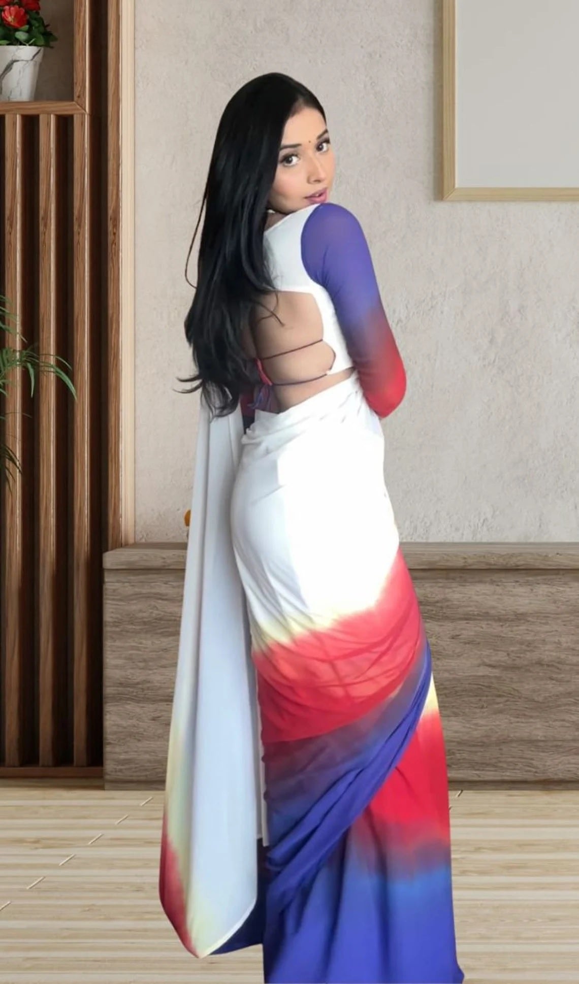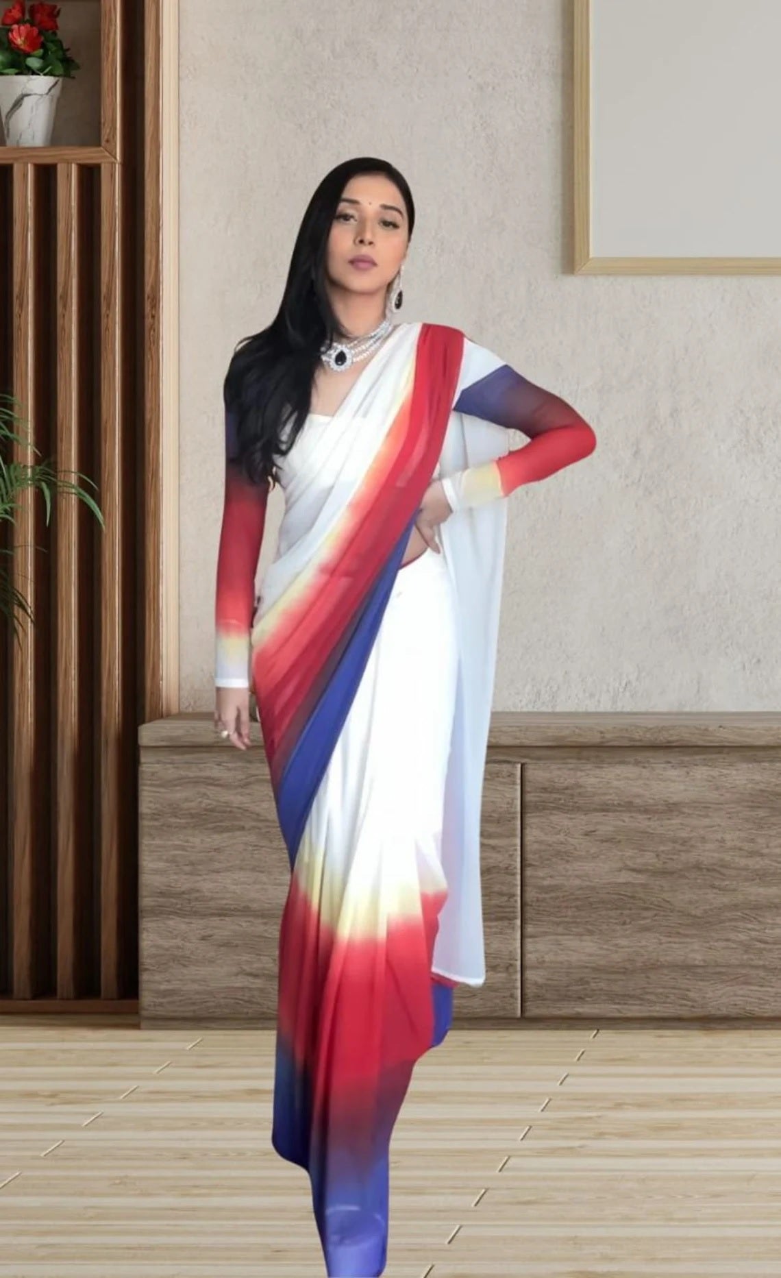 Pure Soft Georgette Ready To Wear Multi Color Saree With Blouse